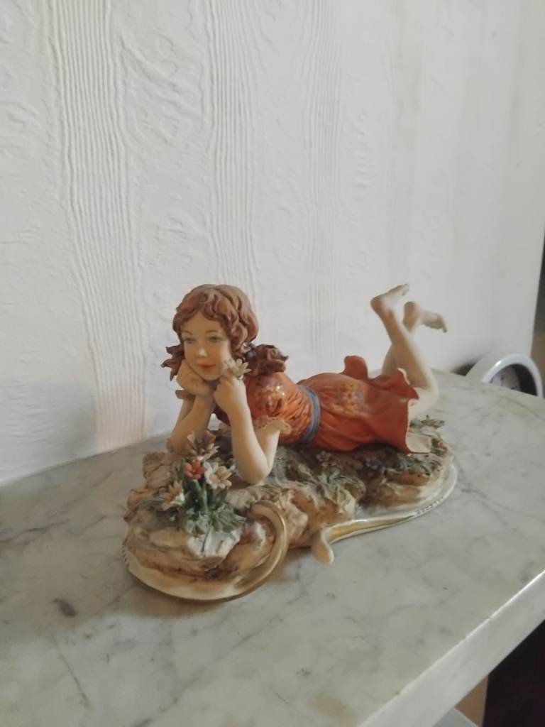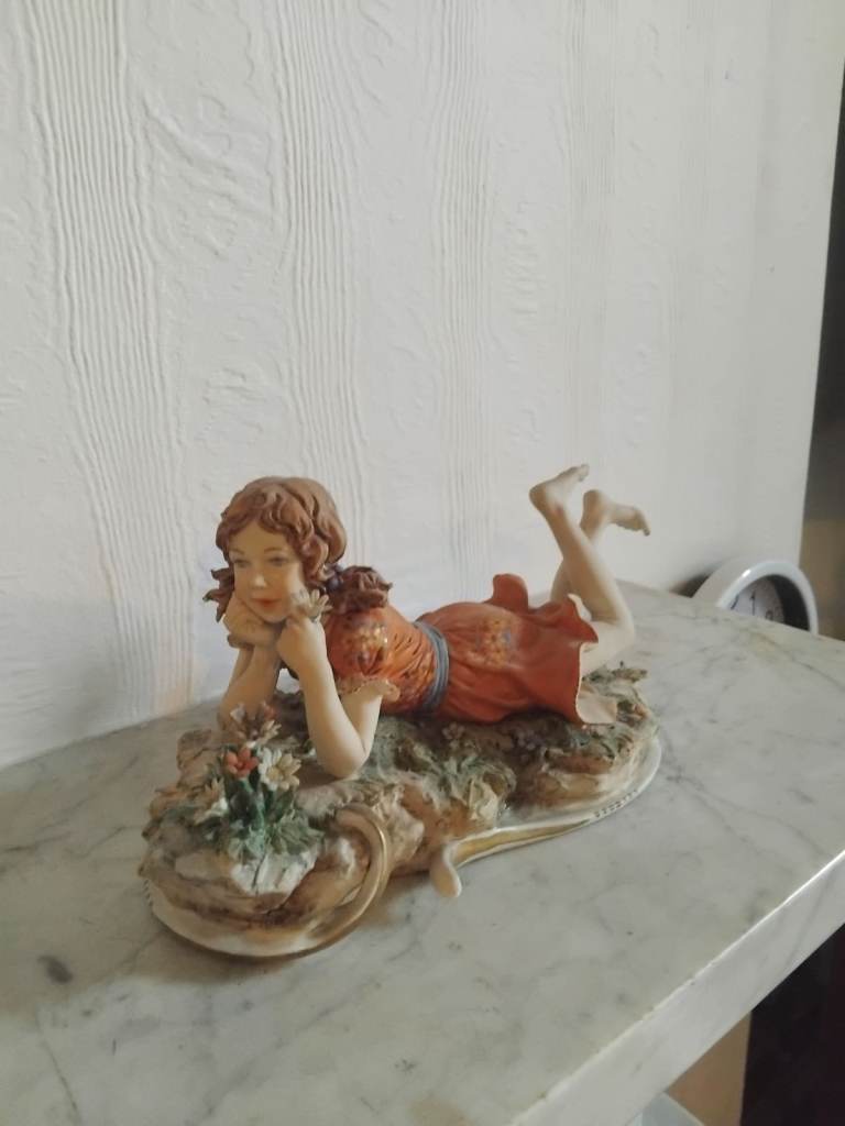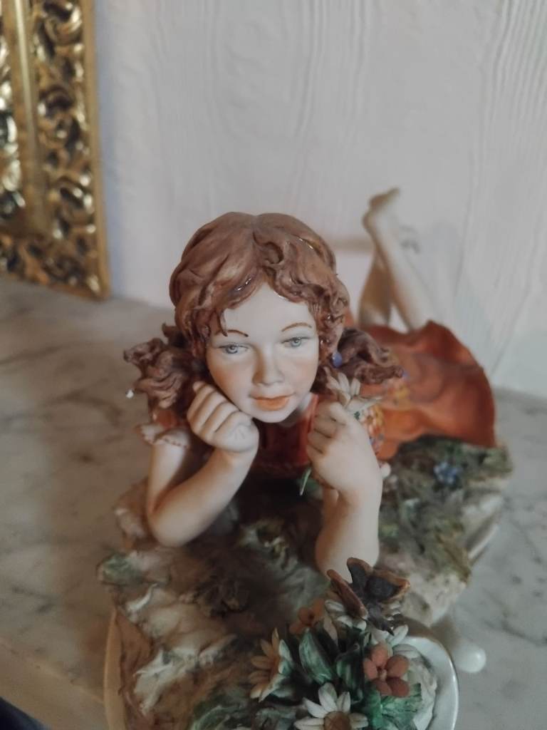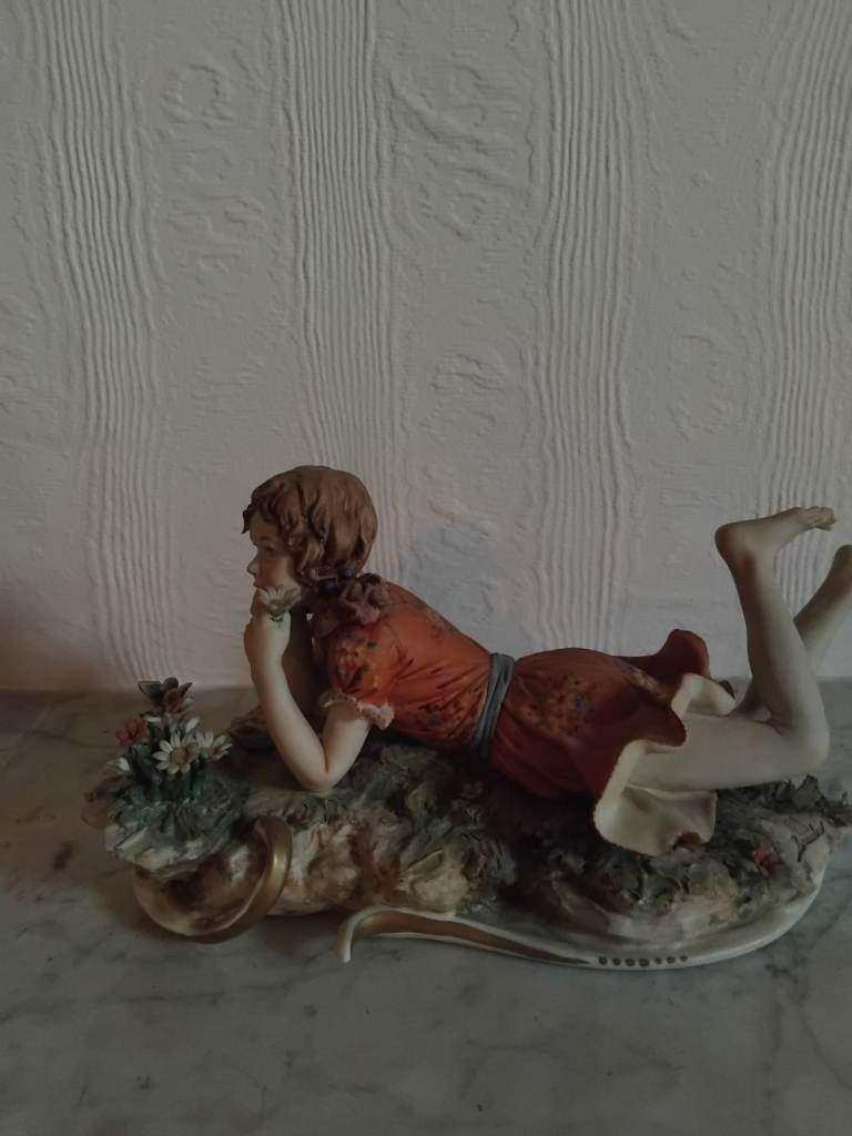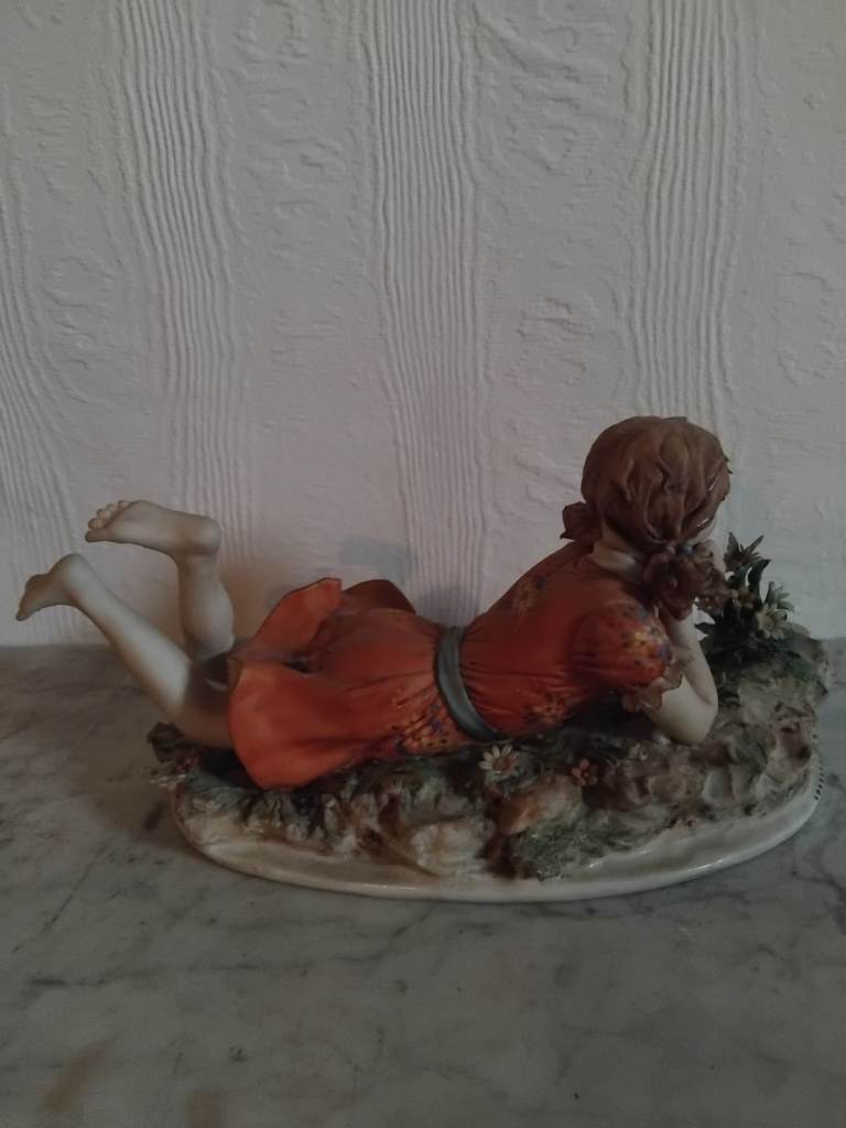 Vintage Capo di Monte. Girl laying on grass. Great condition apart from a small petal missing.