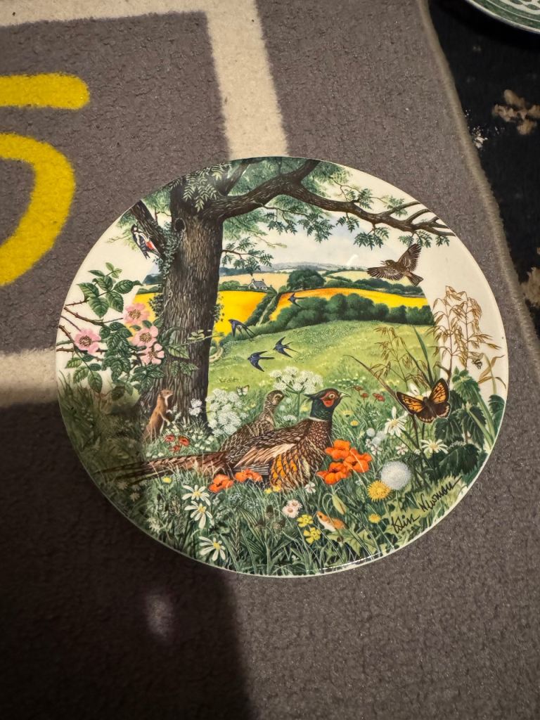 Features a central ceramic tile inlay depicting a traditional scene, adding a unique touch.