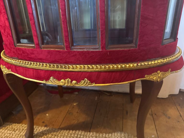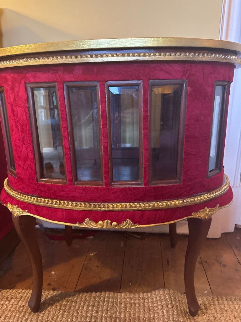 Stunning drinks cabinet upcycled by myself in a lovely opulent Rich deep red velvet with beautiful gold features.