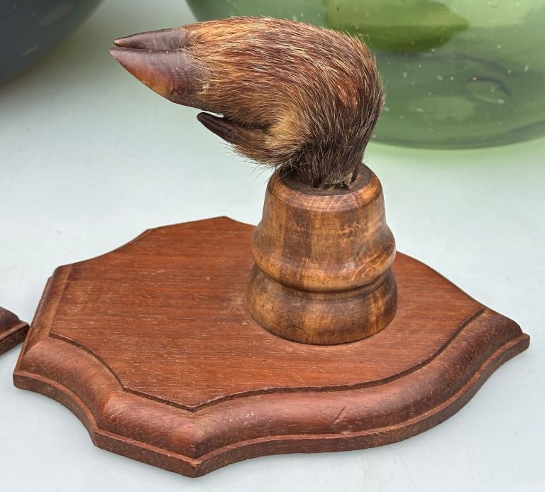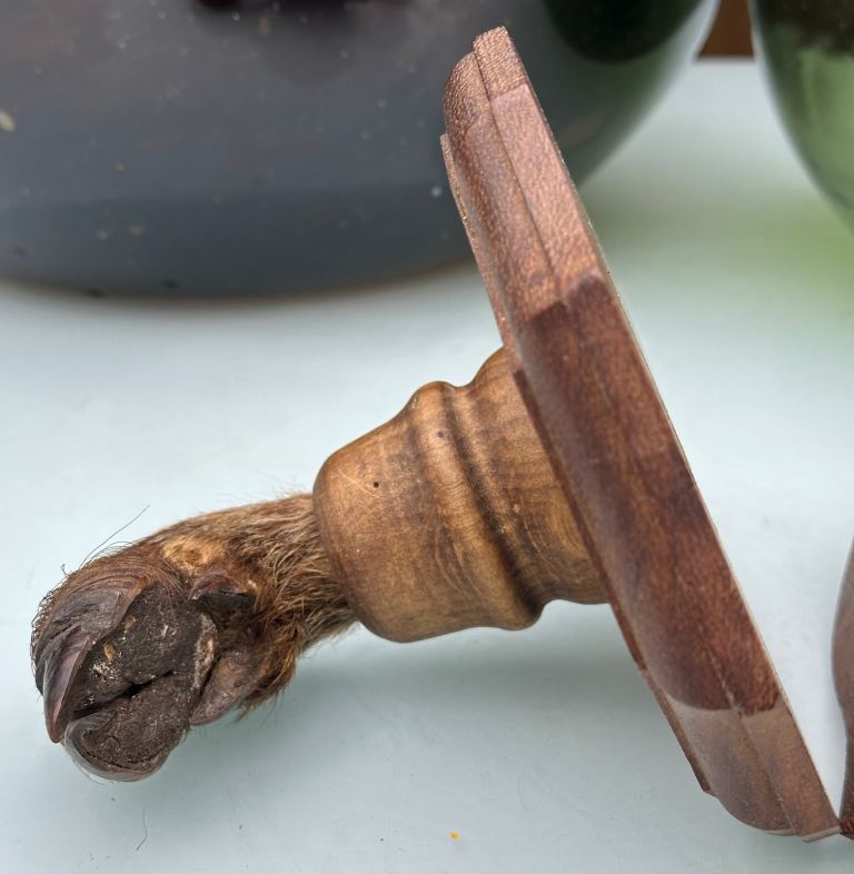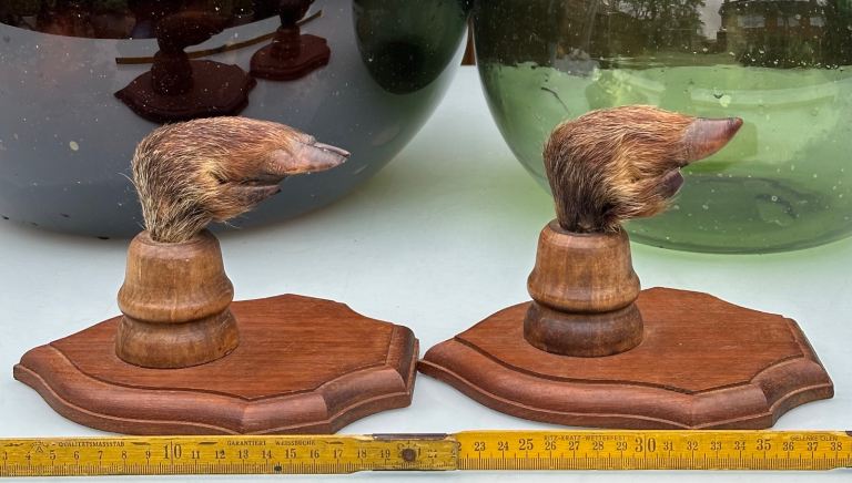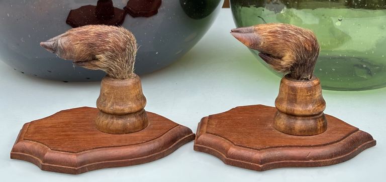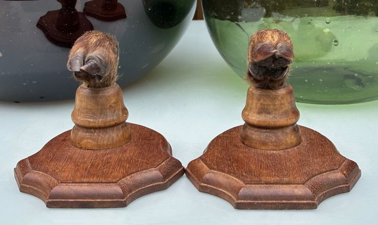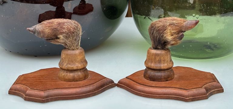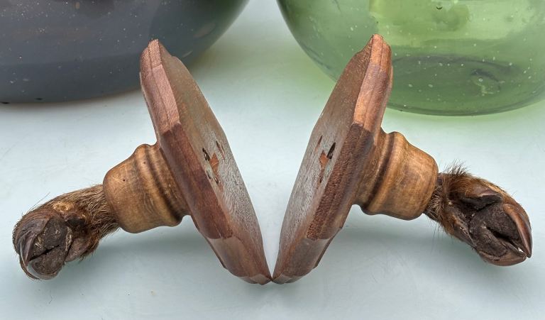 VINTAGE FRENCH TAXIDERMY WILD BOAR HOOVES COAT HOOKS, SANGLIER HOOF HUNTING RACK - WILL POST!