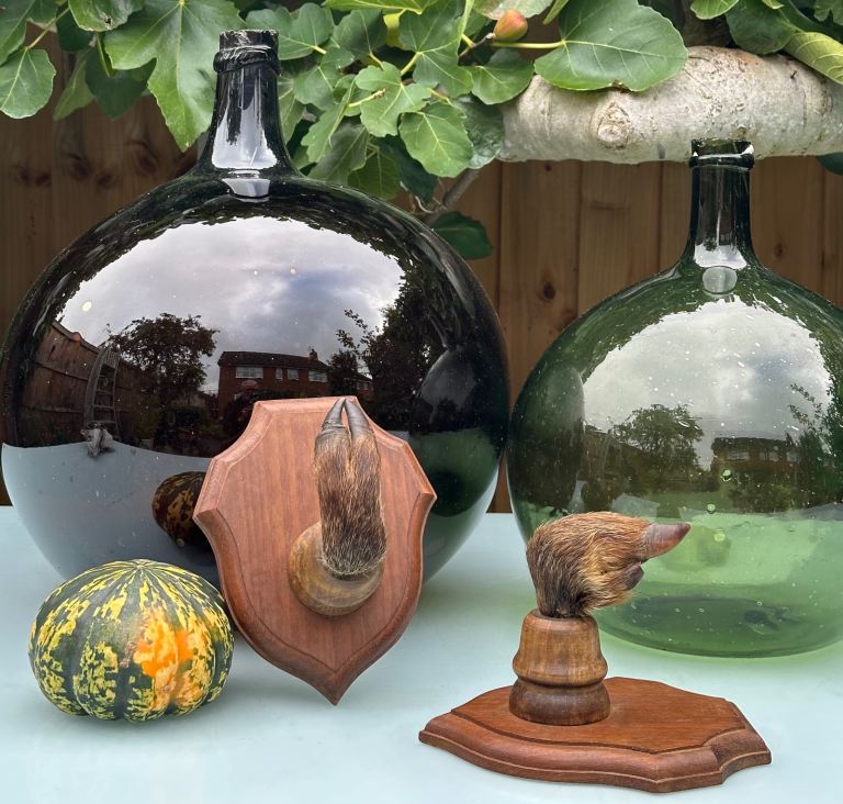 I’m advised they would have originally been hung parallel to each other and used as a hunting equipment rack (bags, hats, guns/rifles).