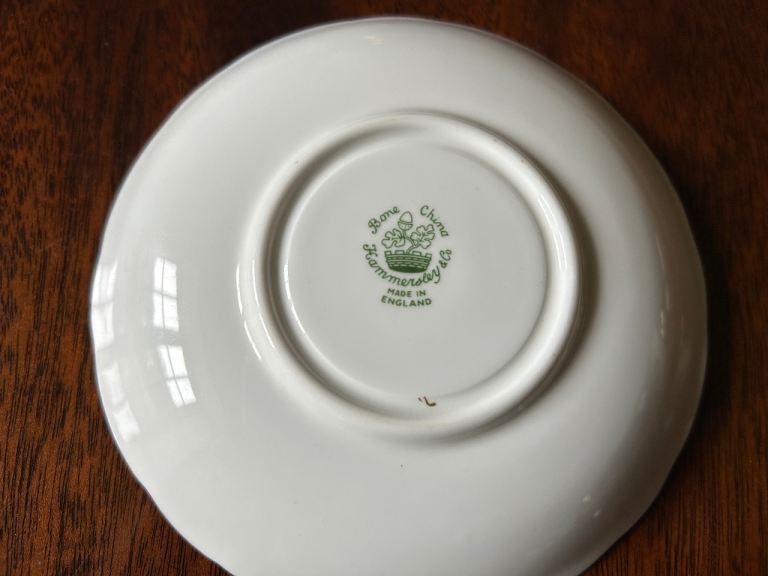 Vintage Hammersley bone china teacup & saucer, green with gilt & floral pattern