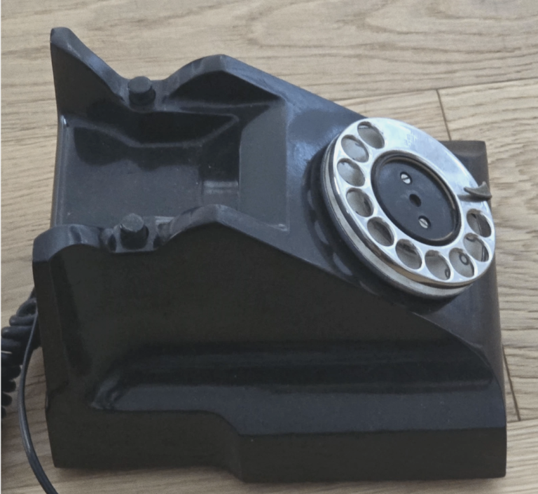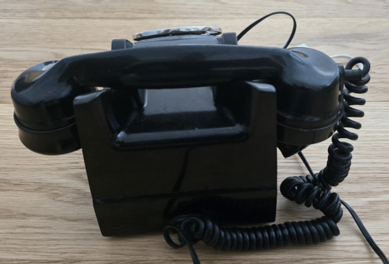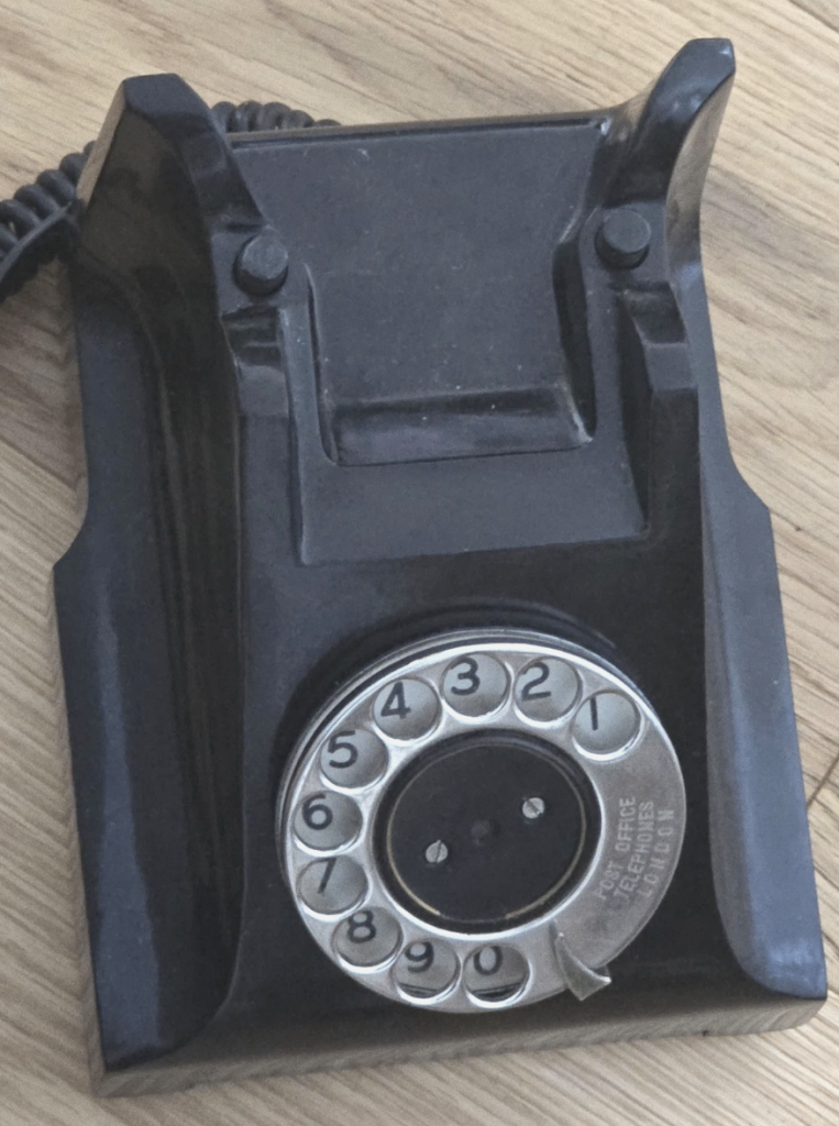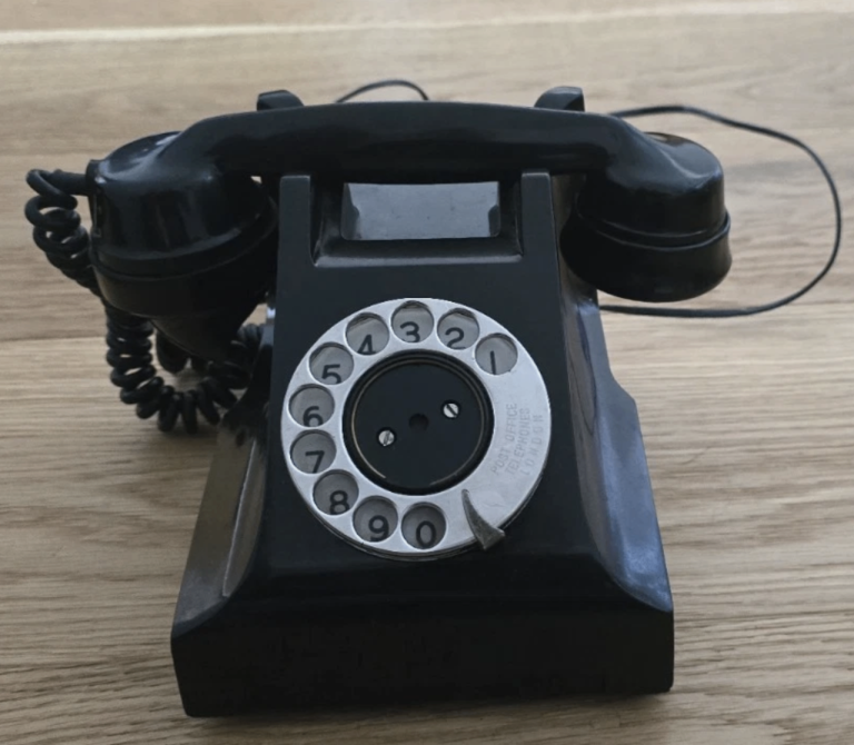 Beautiful Black ITI Bakelite Telephone import from the 1940s-1950s is a vintage collectable item. The sleek black colour adds to its appeal as a stylish and timeless piece of telecommunications history. Perfect for collectors