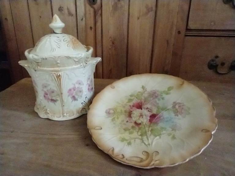 Vintage Plate & Biscuit Barrel
