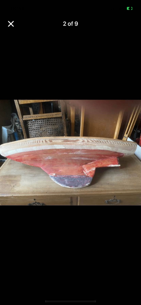Vintage pond yacht and stand, some original paint and fixtures and fittings from when in use.