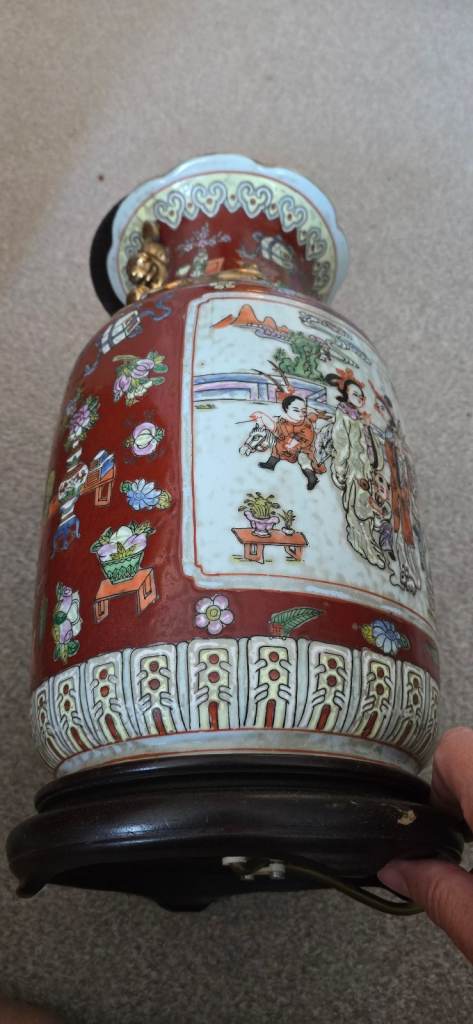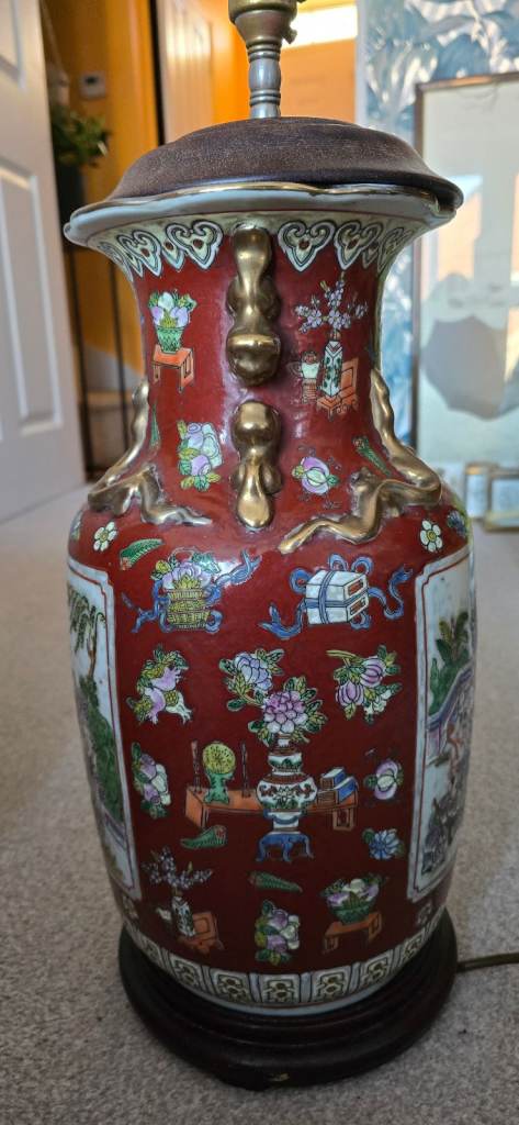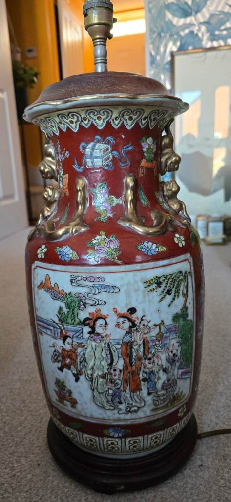 Vintage Red And Gold Japanese satsuma style table lamp.