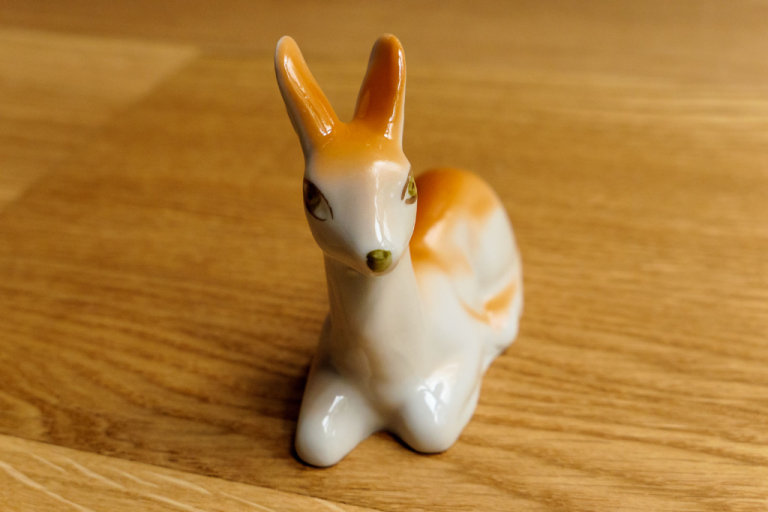 This delightful fawn figurine would make a wonderful addition to any collection of Soviet-era porcelain or a heart-warming gift for any animal lover. Add a touch of woodland whimsy to your décor with this delightful vintage porcelain fawn.