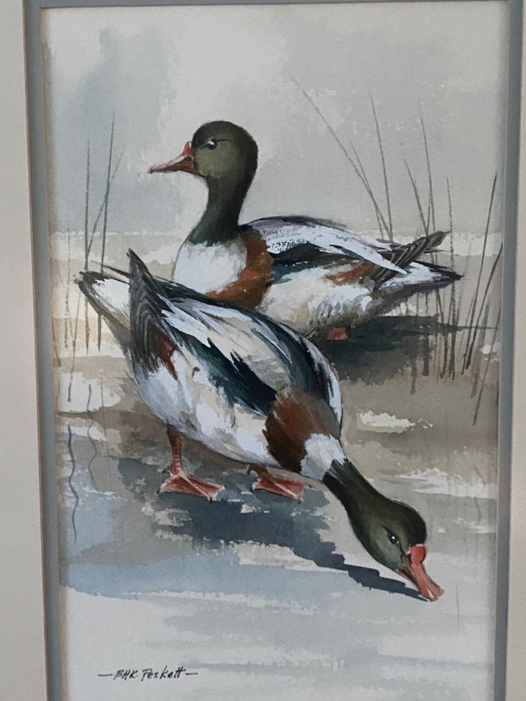 VINTAGE WATERCOLOUR DUCK PAINTING SIGNED BY ARTIST BRIAN PESKETT / B H K PESKETT
