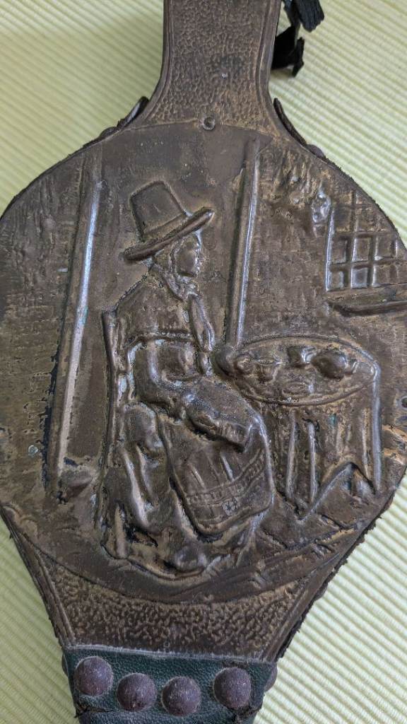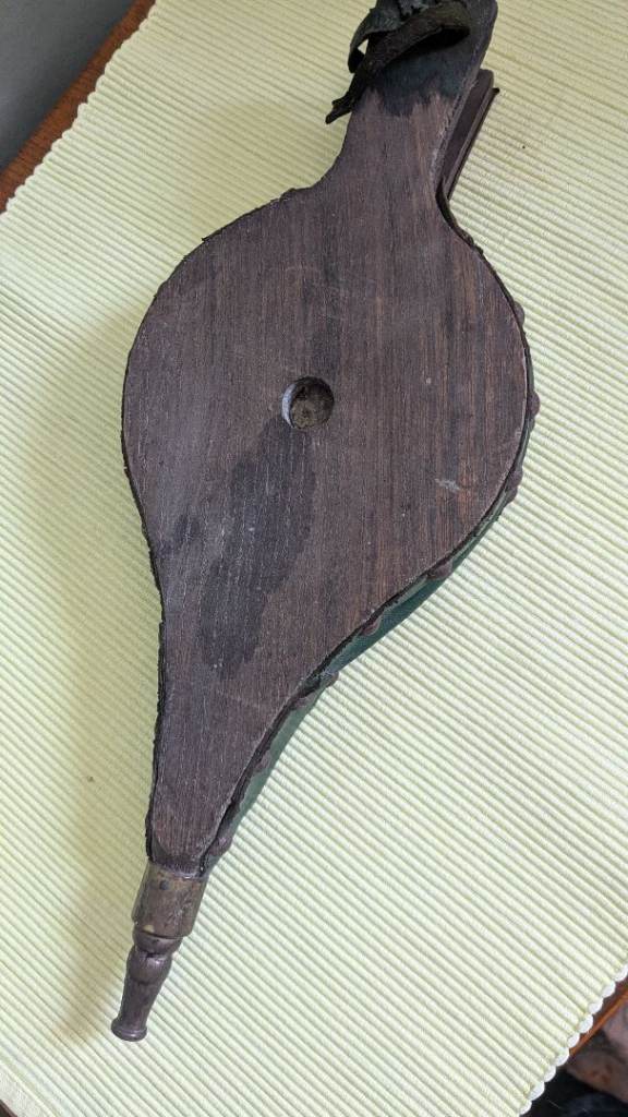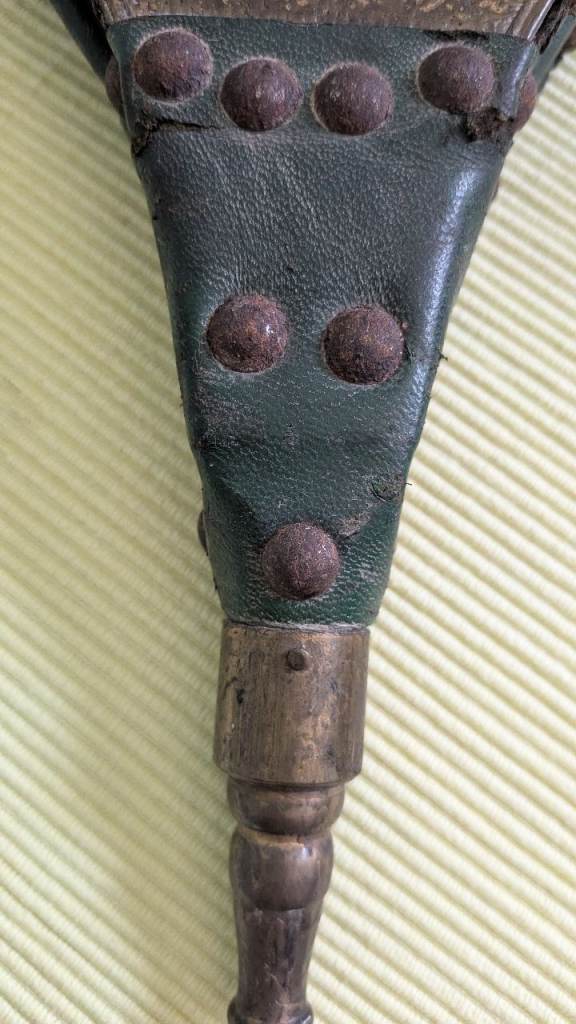 Welsh Antique Vintage Fire Blower still works, more ornament than practical, made from leather and brass I think.