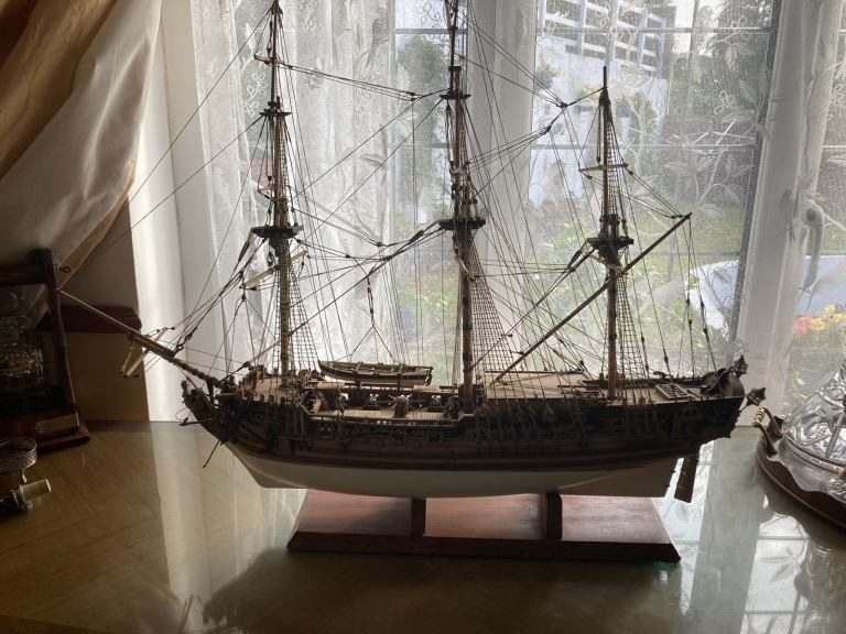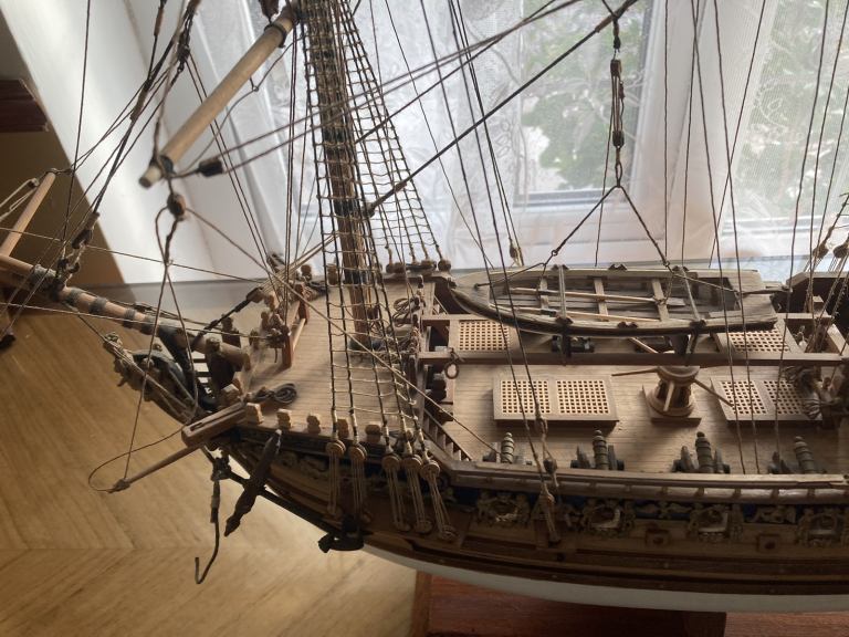 Very intricate scale model ships galleon .Lovely condition with masts and rigging intact