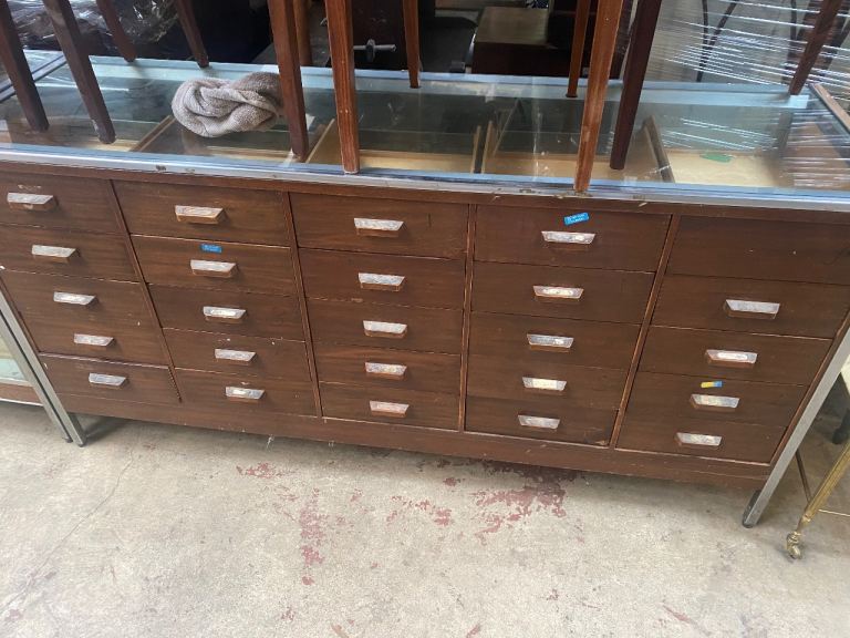 X 2 MIDCENTURY 25 DRAWER HABERDASHERY COUNTERS ,OVERALL CONDITION IS GOOD ,FREE LOCAL DELIVERY