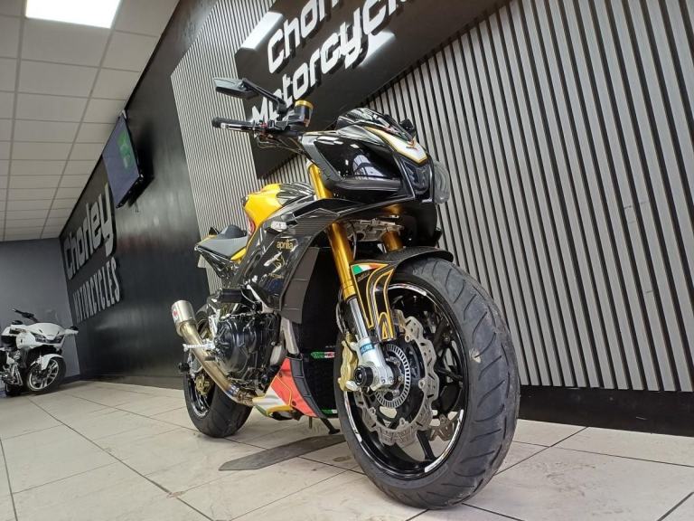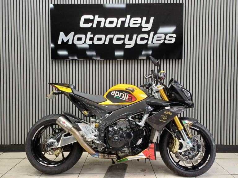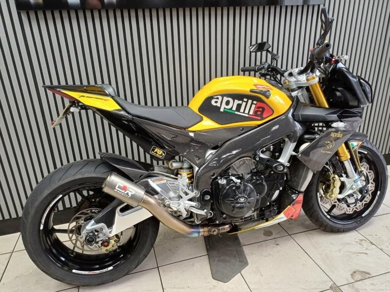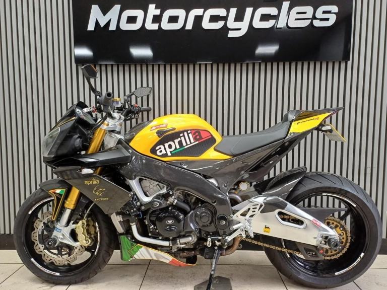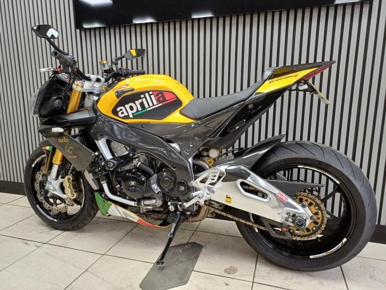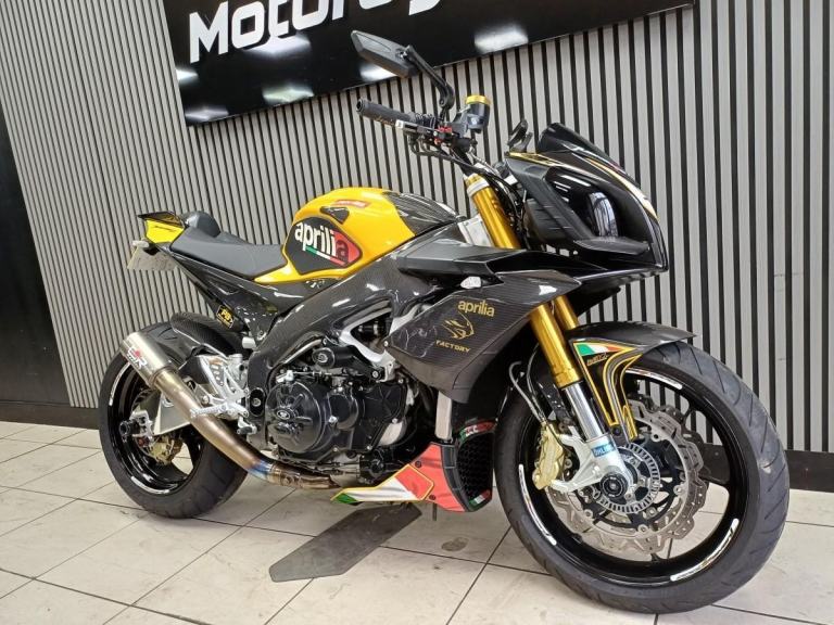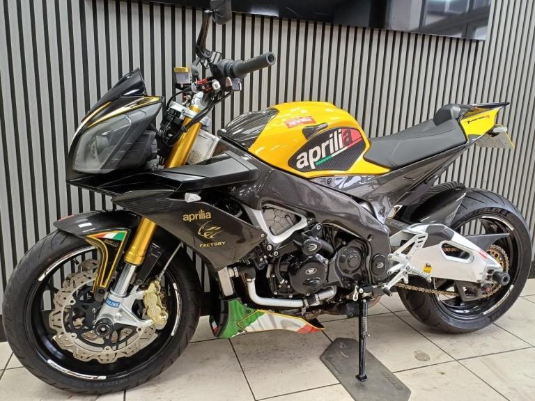 Ready to go same day,,,2012 Aprillia Touno V4 R factory in Yellow and Carbon, Fantastic looking bike, Naked pure fun, Comes with A race fit exhaust, Tail tidy, Lavished with loads of carbon, Hugger, Mud guard , panels, side panels, Frame carbon protection, R&G engine cases, crash bobbins, paddock bobbins, Ohlins front forks, Saacs rear shocker, single seat only, comes with a service book at 920, 5575, 7974, 8792, 10374 miles serviced, pwners book, V5c log book, 2 keys.