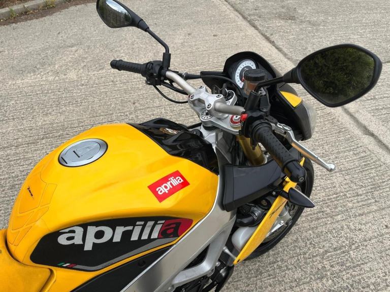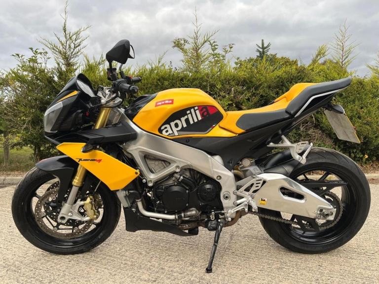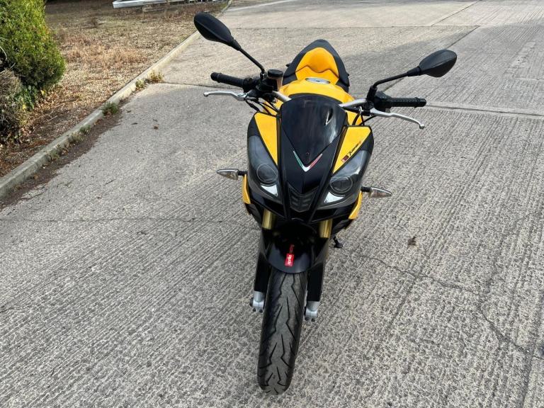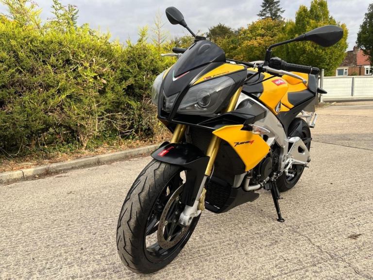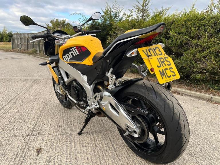 Yellow Aprilia Tuono 1100 V4, year 2013 (13 reg.), 15,001 miles. MOT included in the price. PLEASE VISIT OUR WEBSITE DIRECTLY FOR THE FULL RANGE OF UP-TO-DATE STOCK WHICH MAY NOT BE ON OTHER PLATFORMS. VIEWING STRICTLY BY APPOINTMENT ONLY. Visit [Website URL removed] call 01759 591666 or email [Email address removed. Click Email button to contact us.] for more details.