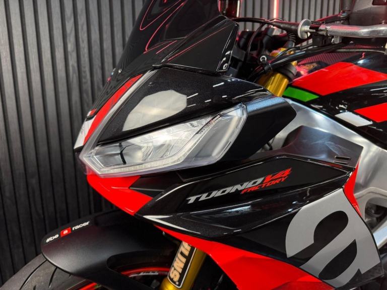 Black, 24/7 ONLINE PURCHASE AVAILABLE - For sale is a stunning 2021 Aprilia Tuono V4 1100, a superb example of the legendary hyper-naked, finished in a menacing gloss black. This incredible machine has covered a low 8,378 miles from new and is in excellent, well-maintained condition. For your complete peace of mind, it has just received a fresh oil and filter change along with a full general inspection, ensuring it is mechanically perfect. Please read carefully: the bike comes with only two key, and this has been fairly reflected in the competitive asking price. This is a fantastic opportunity to own a powerful and charismatic V4 machine. The Aprilia Tuono V4 1100 is a true superbike without fairings, widely regarded as one of the most exhilarating performance motorcycles ever made. At its heart is the legendary 1077cc 65-degree V4 engine, which delivers a colossal wave of mid-range torque and a soul-stirring soundtrack that is completely intoxicating. This power is managed by Aprilia's class-leading APRC electronics suite, including multi-level traction control and an up/down quickshifter, which provides a high level of technological sophistication. Paired with a world-class aluminium chassis derived from the RSV4 superbike, the Tuono offers razor-sharp handling and ultimate precision, making it the definitive choice for the experienced rider who demands V4 power and track-bred agility for the road. ***Rest assured, your new bike includes a 3-month warranty (extension options available) and is guaranteed to have at least 6 months remaining on the MOT. Making your purchase simple: Explore our flexible finance plans and benefit from our affordable nationwide delivery service. Important Note on Viewing: Stock moves quickly! If you are planning to view a particular model, we kindly ask that you call us first to confirm its availability and avoid any disappointment***, 3 owners, ABS, Belly Pan, Carbon Exhaust, Crash Bungs, Electric start, Rear Hugger, Tank Pad, Tinted Screen, Traction Control, 2 Keys, Please visit our website to buy online, apply for finance or find out about our delivery prices.