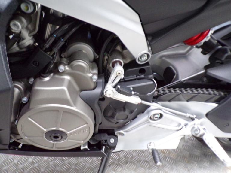 THE 659cc PARALLEL TWIN ENGINE PRODUCES AROUND 100hp AT 10,500rpm AND 67Nm OF TORQUE AT 8,500rpm. 6 SPEED GEARBOX AND FITTED WITH THE UP-AND-DOWN APRILIA QUICKSHIFTER FOR THOSES RACE LIKE CHANGES.