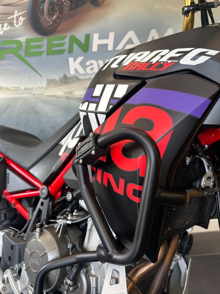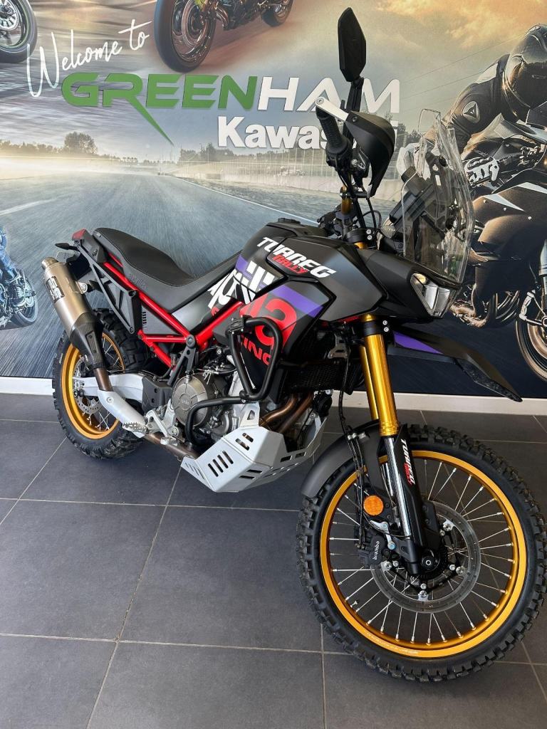 Black, Here we have an incredible 2025 Aprilia Tuareg 660 Rally ? a true rally-inspired adventure bike built for riders who want serious off-road capability without sacrificing real-world usability. Developed from Aprilia?s race-winning rally programme.Powered by a punchy 659cc parallel twin engine producing around 80hp, the Tuareg Rally delivers strong, responsive performance with a more aggressive throttle map and lightweight feel, making it just as exciting on trails as it is on the road. Key Details:2025 (25 reg)Low mileage659cc parallel twin engine 6-speed gearboxAPRC electronics package LightweightRally-Specific Features:Fully adjustable long-travel Kayaba suspension (240mm travel)High front mudguard & rally stylingUprated skid plate & hand guardsNarrower spoked wheels for proper off-road tyresTitanium SC Project exhaustTaller seat and handlebar setup for standing ridingThis particular bike includes the original pack, 2 keys and original owners handbooks etc.First service carried out at Fowlers of Bristol and the balance of the Aprilia warranty until April 2027., 0 owners, 2 keys, ABS, Crash Bars, Electric start, Hand Guards, Heated Seats, Heated Grips