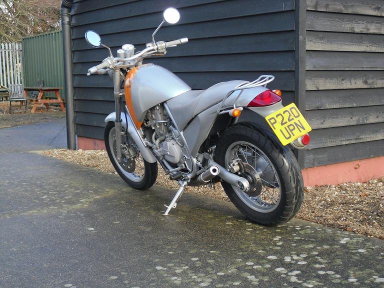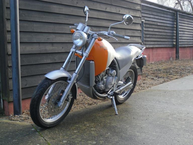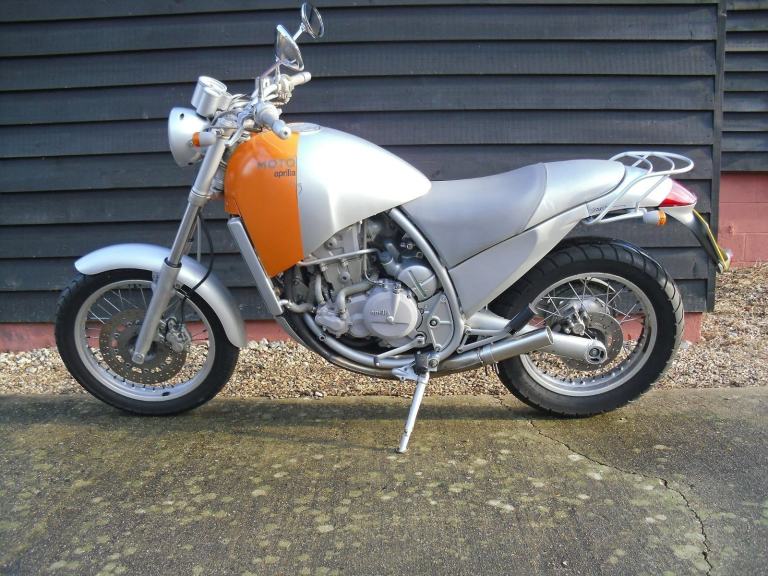 THIS IS A VERY ORIGINAL APRILIA MOTO 6.5 IN EXCELLENT LOW MILEAGE CONDITION . THE APRILIA MOTO 6.5 STARCK WAS NOT MADE IN BIG NUMBERS AND THERE ARE FEW OF THEM AROUND NOW . THIS ONE COMES WITH THE ORIGINAL APRILIA SERVICE MANUAL , ORIGINAL PARTS LIST AND THE GENUINE POINT OF SALES BROCHURE ALONG WITH 4 KEYS AND PREVIOUS SERVICE PAPERWORK . THE 6.5 WAS THE WORK OF THE FAMOUS FRENCH DESIGNER PHILIPPE STARCK AND HAS ALWAYS BEEN A BIKE THAT HAS ENCOURAGED A DEBATE OVER ITS LOOKS. WE HAVE ALWAYS HAD A SOFT SPOT FOR THE BIKES AS THEY ARE EASY TO RIDE AND DO EVERYTHING VERY WELL .THE 650CC ENGINE IS VERY TRACTABLE AND PULLS WELL FROM AS LOW AS 25-30 MPH IN TOP WHICH MEANS FEWER GEAR CHANGES AND A MORE RELAXING RIDE . WE SOLD THIS BIKE 4 YEARS AGO TO THE PREVIOUS OWNER AND HAVE RECENTLY BOUGHT IT BACK .THIS IS AN OPPORTUNITY TO OBTAIN A DESIGN CLASSIC FOR NOT A LOT OF MONEY , IT CAN BE VIEWED TUES TO FRI 9.00 TO 5.30 , SAT 9.30 TO 3.30. HPI CLEAR , PART EX POSSIBLE.