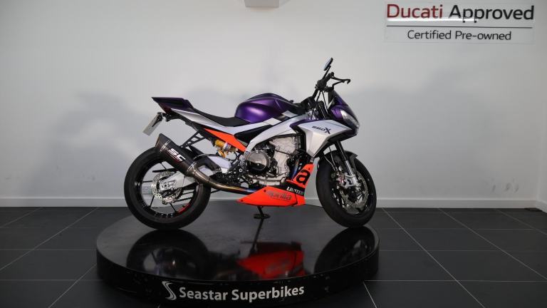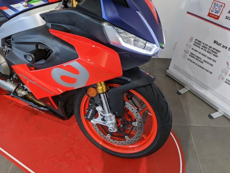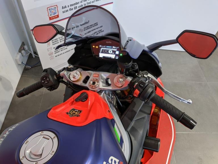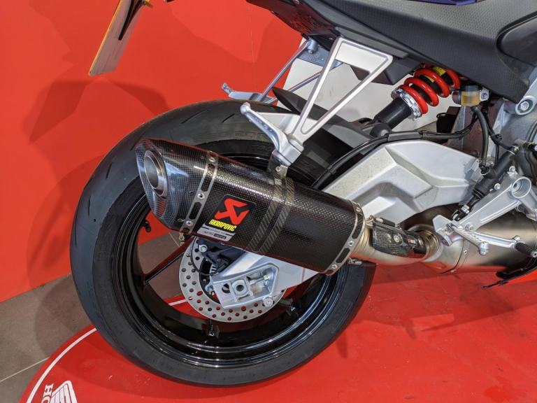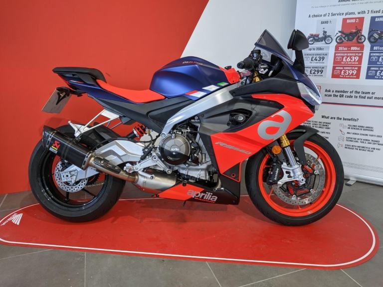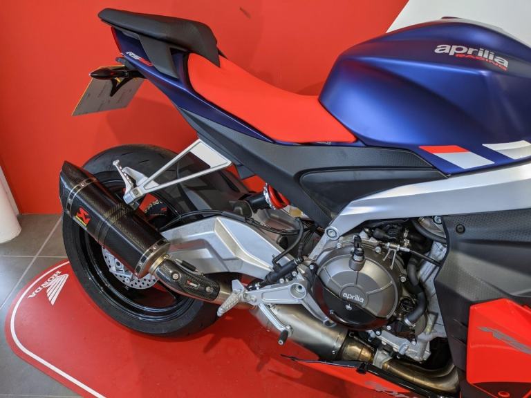 Amazing once in a blue moon chance to grab one of these spectacular bikes for peanuts compared to the new list price, this one only having been ridden once with just 89 miles on the odometer and fitted with an Akrapovic exhaust. The bike will be serviced before sale (our technicians are Aprilia factory trained/qualified) and we will ALSO include a 12 MONTH NATIONWIDE WARRANTY VALID AT ANY VAT REGISTERED MOTORCYCLE DEALER IN THE UK.