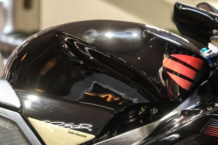 Here we have an opportunity to own this magnificent Aprilia RSV Mille R Colin Edwards super bike. This one owner example is number 251 of just 461 produced and is in stunning unmarked condition and has covered just 4,328 kilometers. Finished in the Black Colin Edwards racing paint scheme with contrasting Blue wheels and dripping in carbon. The bike benefits from having Ohlins suspension front and rear as well as Brembo brakes and a twin Akropovic Aprilia Racing exhaust system as well has a host of other upgrades. The bike is supplied with the original owners manual, rear seat and pegs. A service and MOT will be carried out Prior to sale.