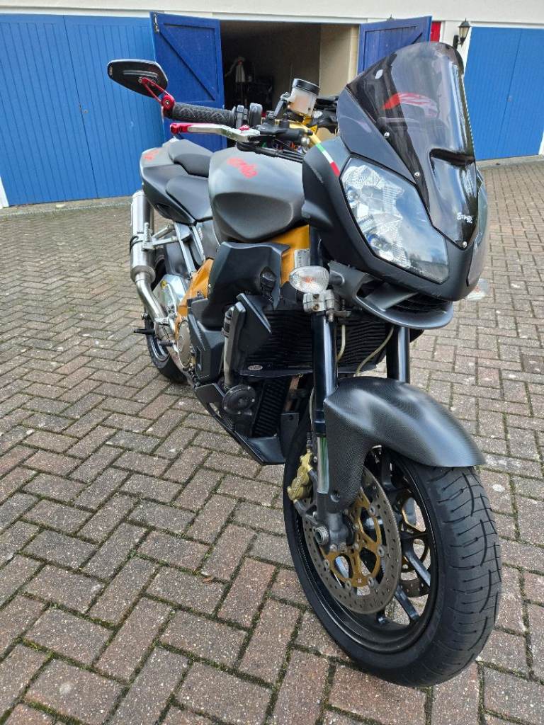 The Aprilia Tuono 2008 originally registered, but was off the road for a number of years due to a accident and repair. It was put on a Q plate in 2018, I purchased it in 2019 and done 5000 smiles on it. This is a sleek black sports touring motorcycle with custom features like handlebars/clipons and mirrors. This manual transmission bike with a six-speed manual offers performance upgrades with a special exhaust/slip on. With only one previous owners, this Italian-made bike also includes a V5 registration document, independent vehicle inspection, and electric start. This stylish and high-performing motorcycle is perfect for any rider looking for a thrilling experience on the road. The only reason for sale is lack of use, rides fantastic and will put a smile on your face every time you roll it out. To View this bike please call me, I am in Tunbridge Wells, Kent. There is a full vehicle Check report available on request. Its up for £2500 O.N.O Payment in CASH or Bank Transfer. No PAYPAL UK Only.