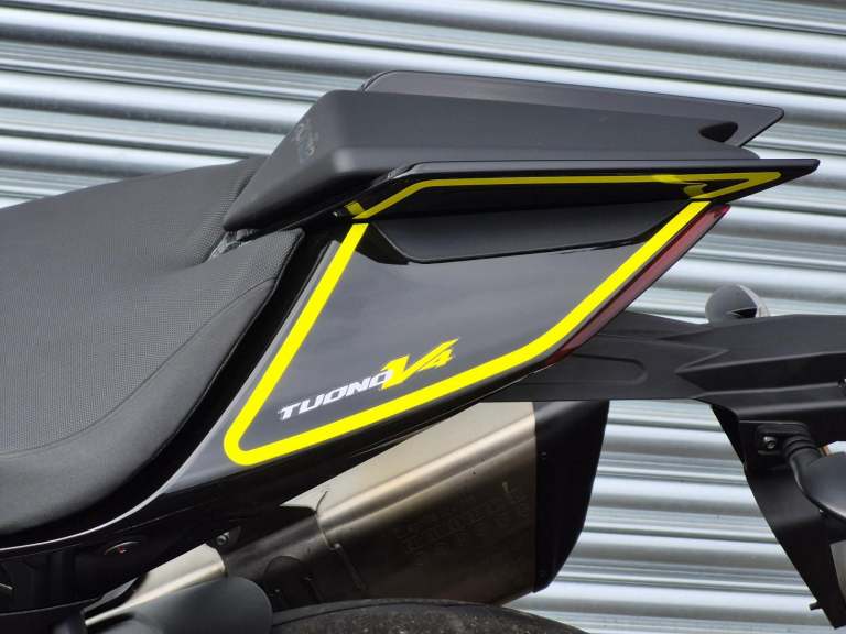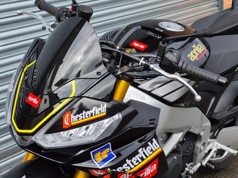 APRILIA TUONO V4 1100 Factory with Chesterfield graphics. This one-owner bike has covered only 515 miles and is covered under Aprilia’s extended warranty (expires 30.03.2027).