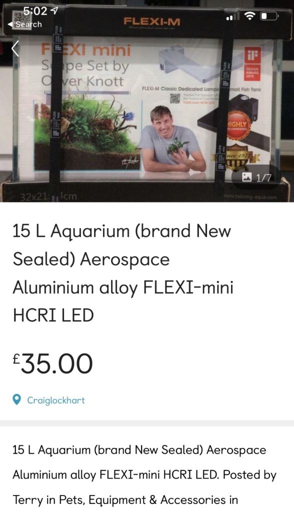 Posting for 5+ monthsAquarium (15L)- Sealed, Flexi Mini HCRI LED“