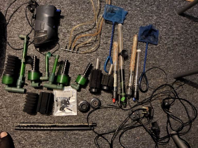 Various items suitable for fish hobbiest all used open to offers cheap to clear prefer to sell all good pawfly pump and wave maker and rocks and wood decorations heaters filters £50 aquarium 3ft 2"x19"x15½" extra thick glass £50 stand £20