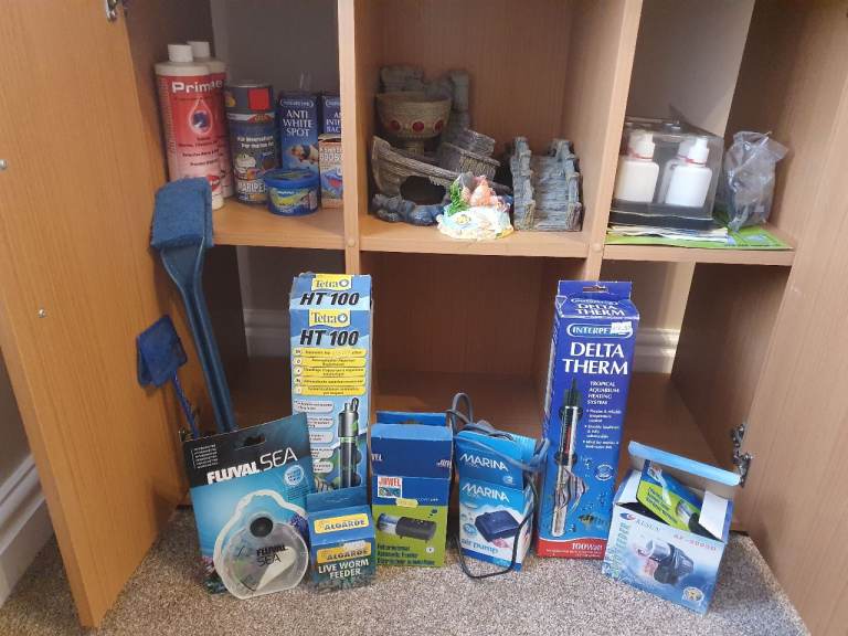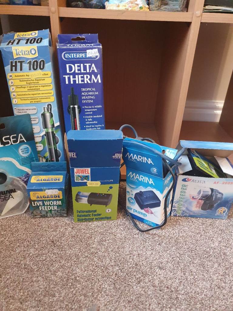 Complete with overhead light, Juwel Filter System, 2 x heaters, Automatic feeder x 2, Air pump, multiple ornaments, plus other accessories