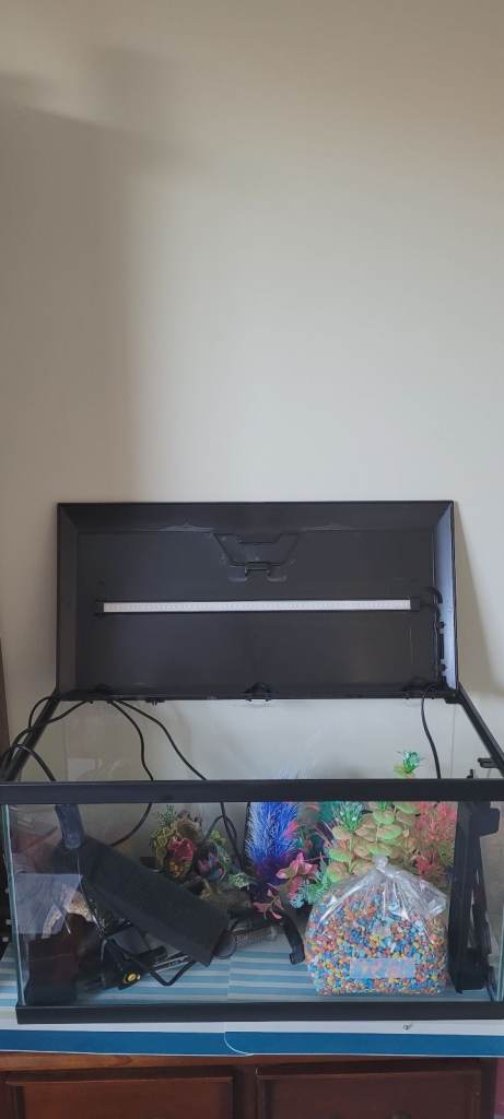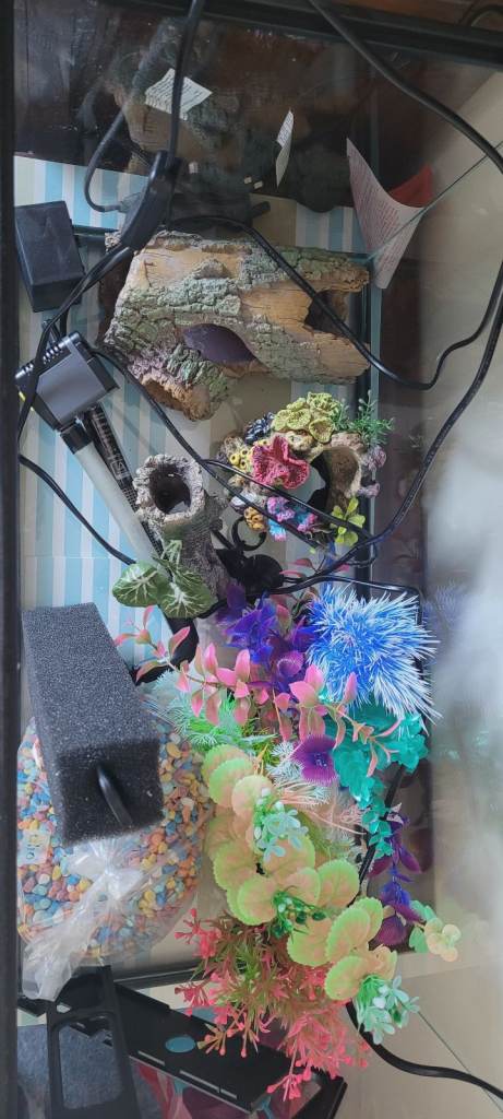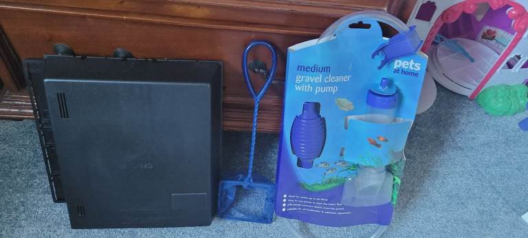 Full aquarium in perfect working order. Spare filters,.gravel cleaner (still boxed), net, and everything else you need for an amazing fish display, with the exception of fish, you'll need to buy these yourself.