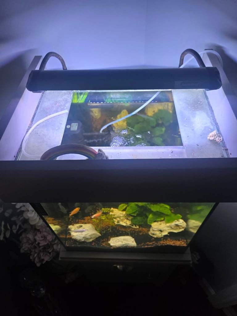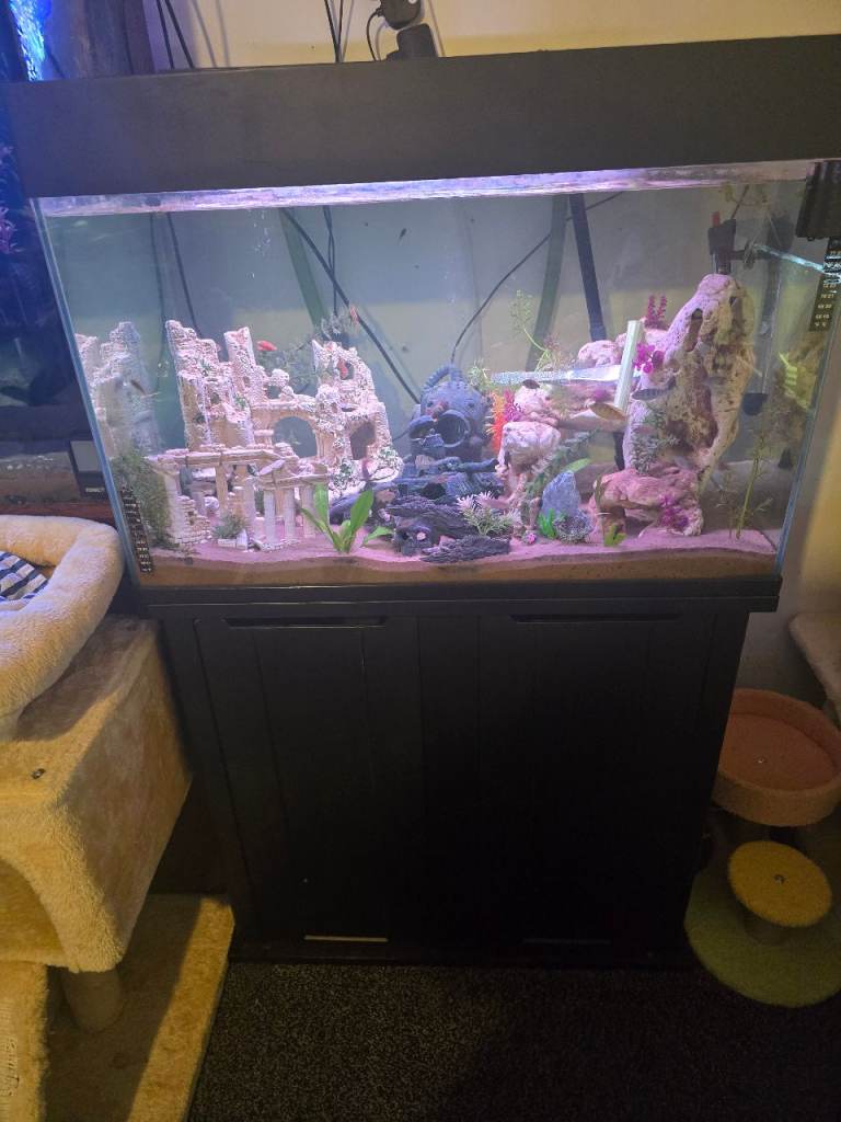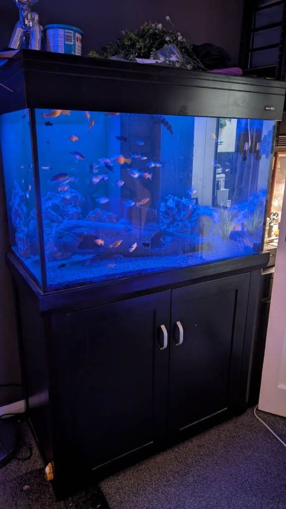 80lt comes with pump/filter black sand lovely tank just upgraded to bigger tank as fish out grew this one collection nr3