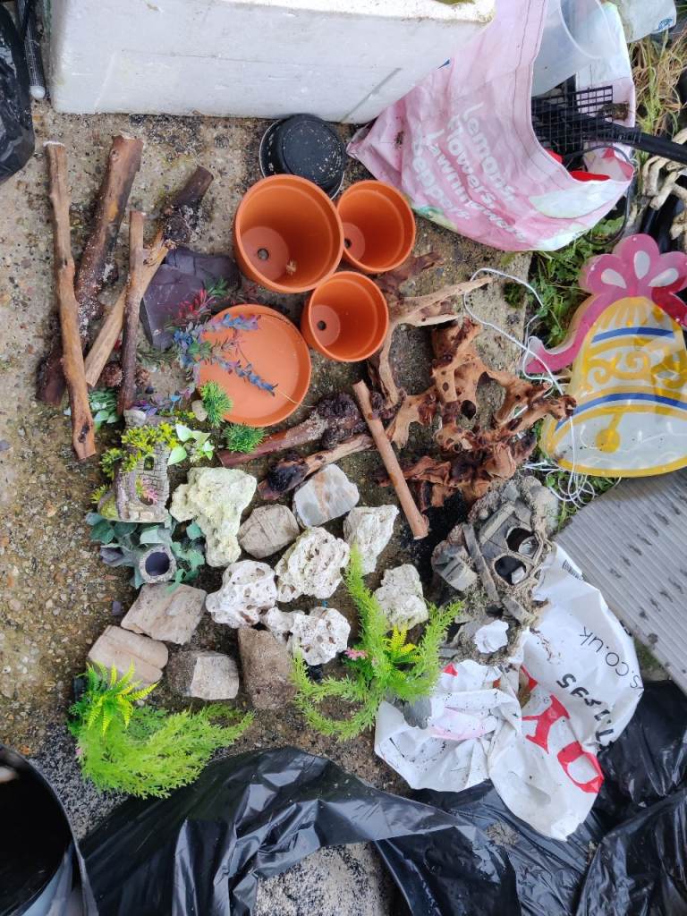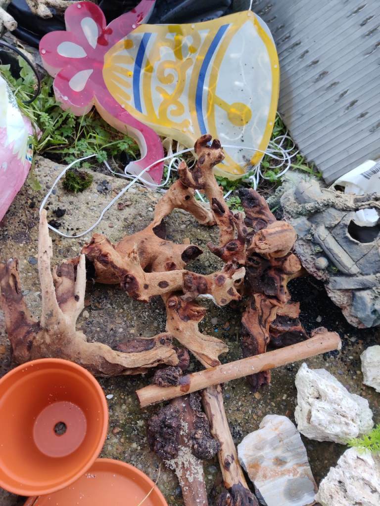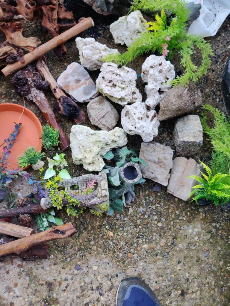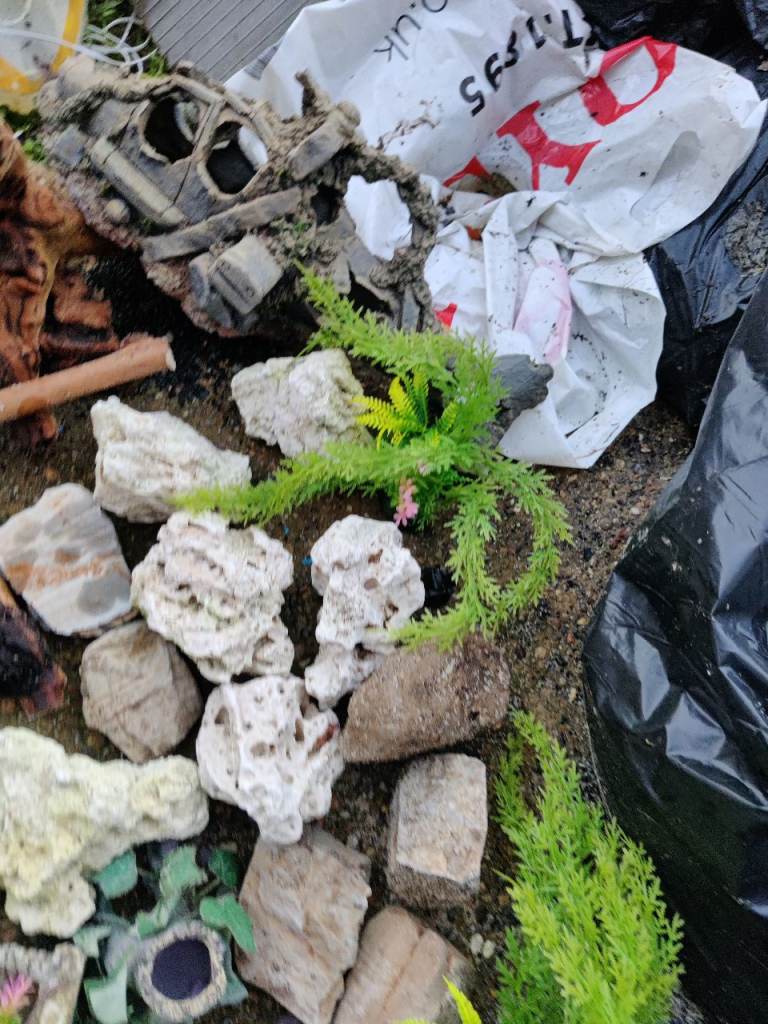 Rocks fake plants few pots 4 bits bogwood 7 sticks bits of wood sensible offers for the lot as no longer needed I can deliver I'm in Norwich