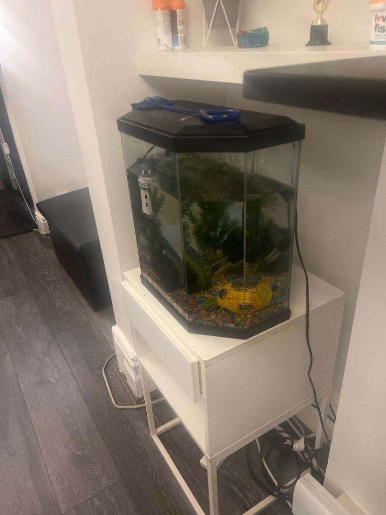 Fish tank only 6 months old. Includes ornaments shown in the tank plus a heater and filter.