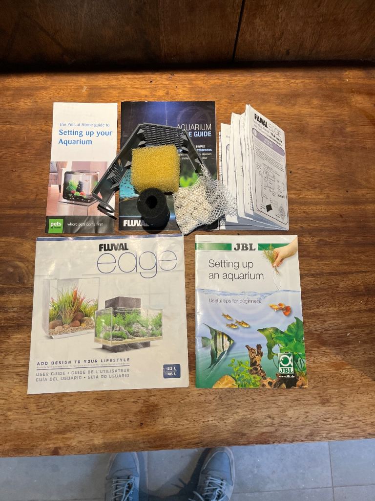 Fluval Edge 23l aquarium in white with full instructions filter, pump, media and light. Sleek modern design, perfect for first set up or display tank.
