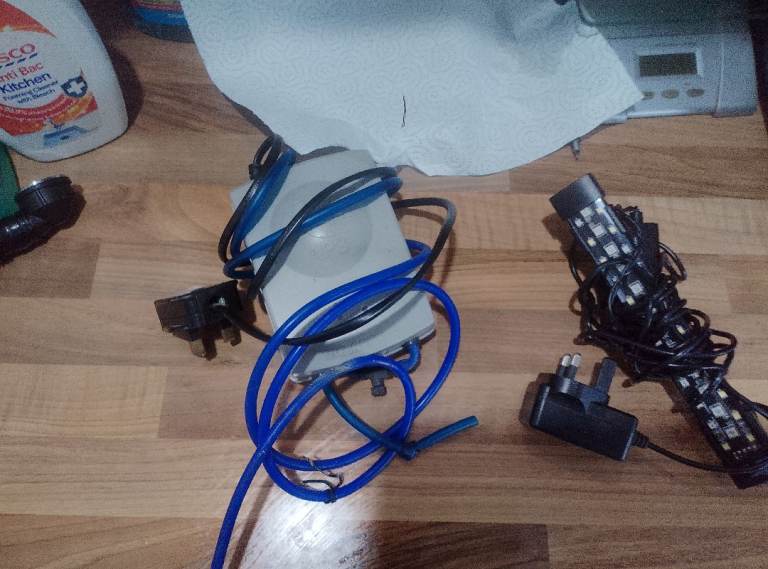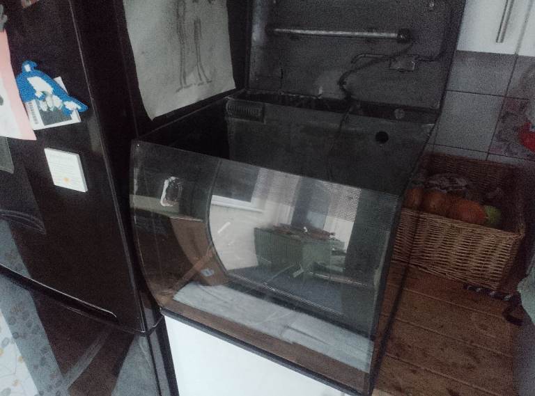 Fluval flux fish tank bow front has built in rear filter with pump ( works well ) inc luding media.air pump with sponge filter.under hood lighting new light supplied.L 42 cm H 40 cm D 40 cm . Water test kits included.all are in v.g.c.collection only.