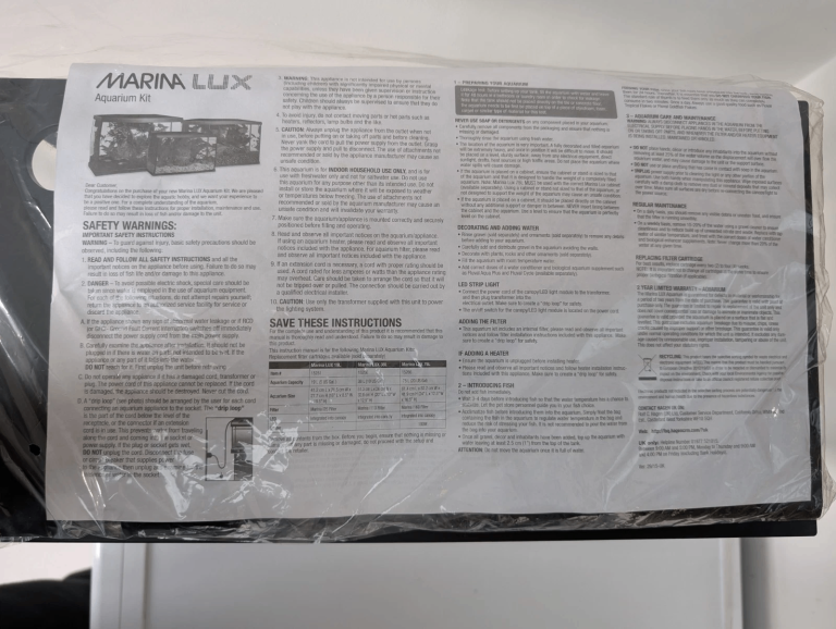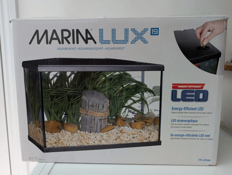 MARINA LUX LED AQUARIUM KIT 19L with INTEGRATED LIGHTING & FILTER FISH TANK.