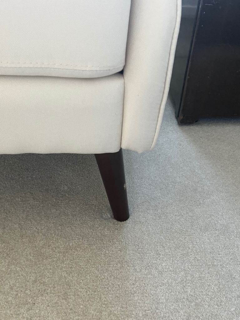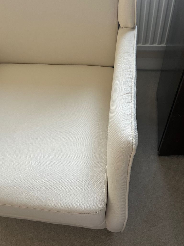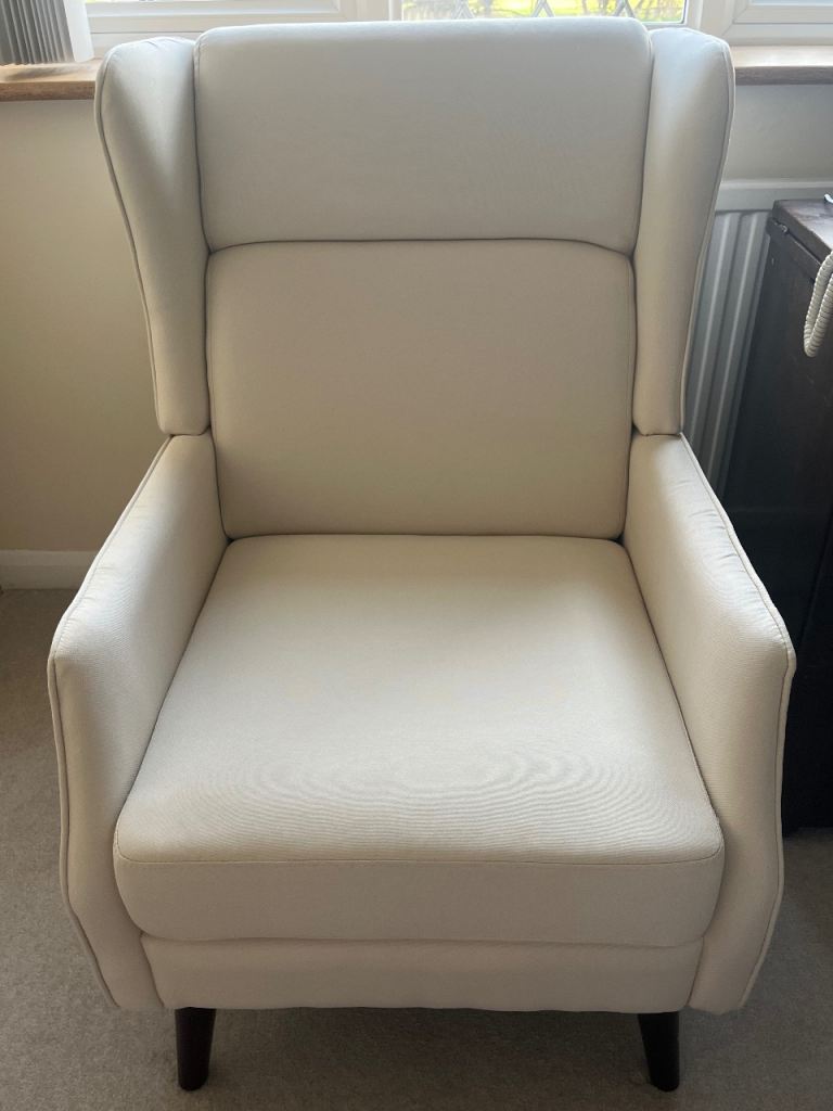 Never used cream colours arm chair. Can be disassembled to fit in car for transport/delivery. £120 Ono.