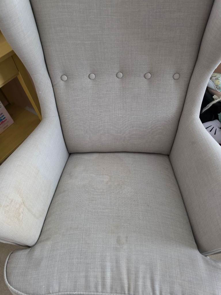 Been used as a reading chair for 2 children so has some tea and water marks. Im sure will they will come out with a carpet / upholstery cleaner.