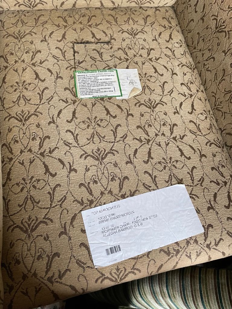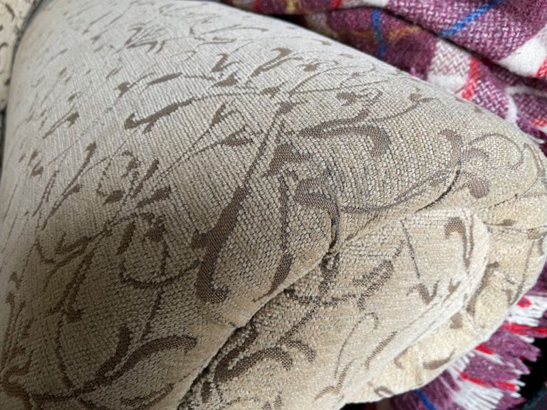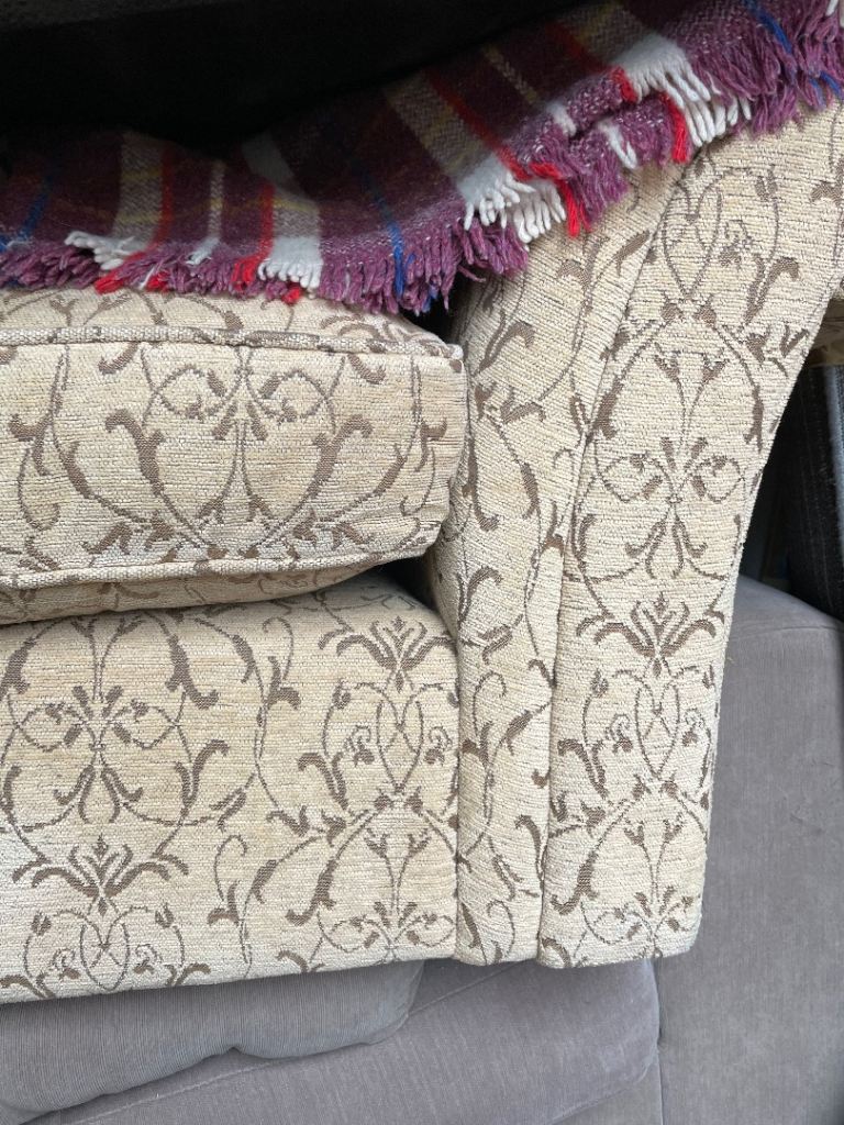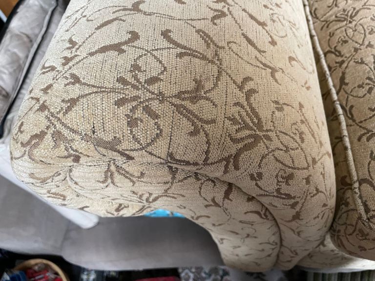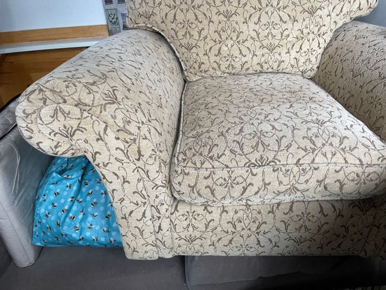 Laura Ashley armchair, used but in good condition. A couple of marks which are photographed and fading over the years,Scratches and wear on the legs but she’s a beauty. A large very comfortable armchair. I’ve got floor protectors for the front wheels on the legs, all legs are off ready and the seat cushion and back cushion come off for transporting. Collect from south bank area of york please, thank you x