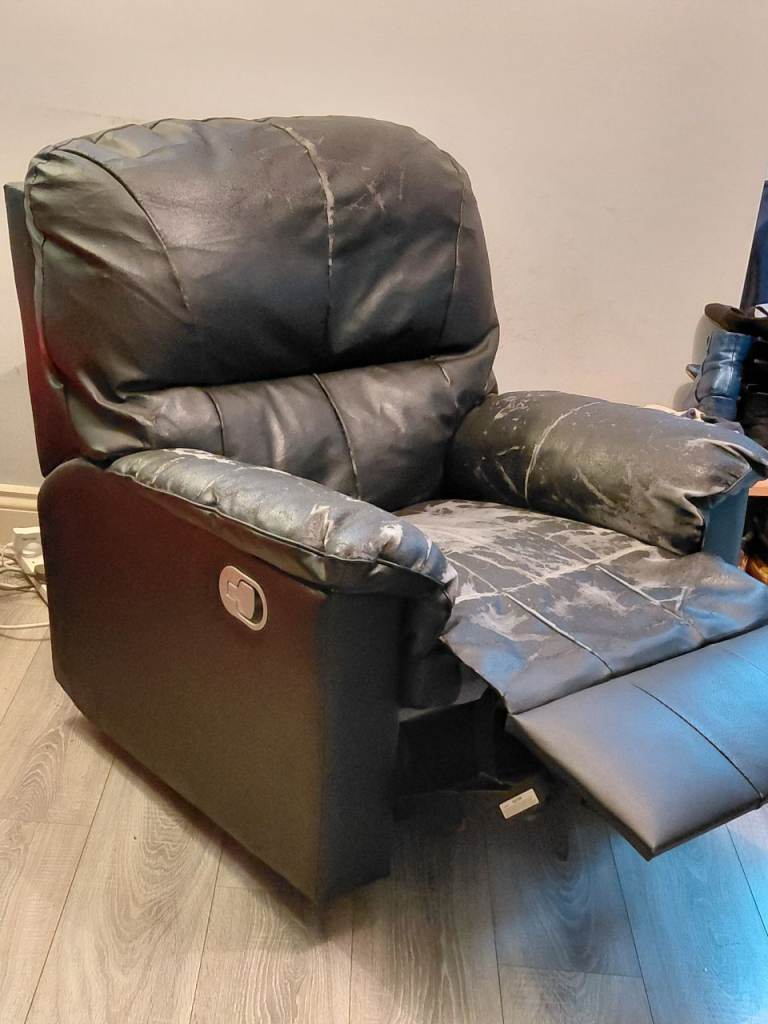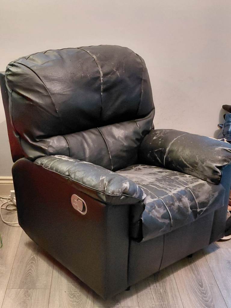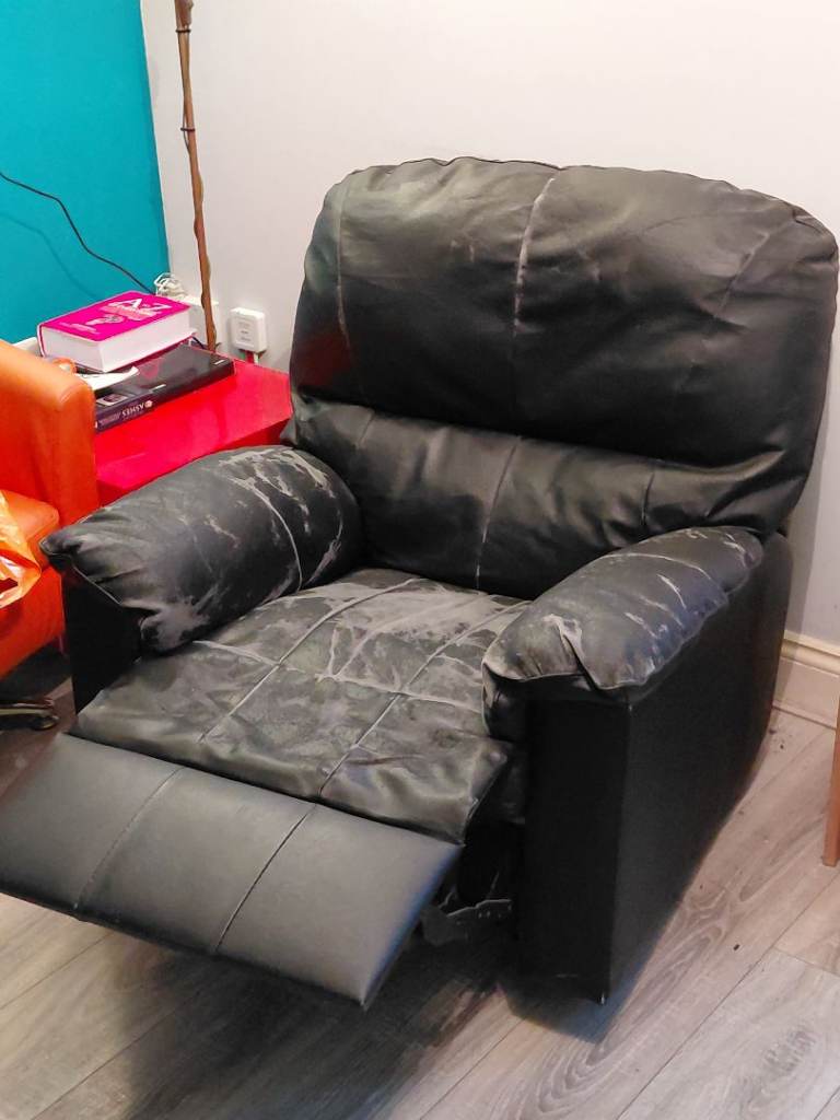 Posting for 9+ yearsBlack leather style recliner armchair