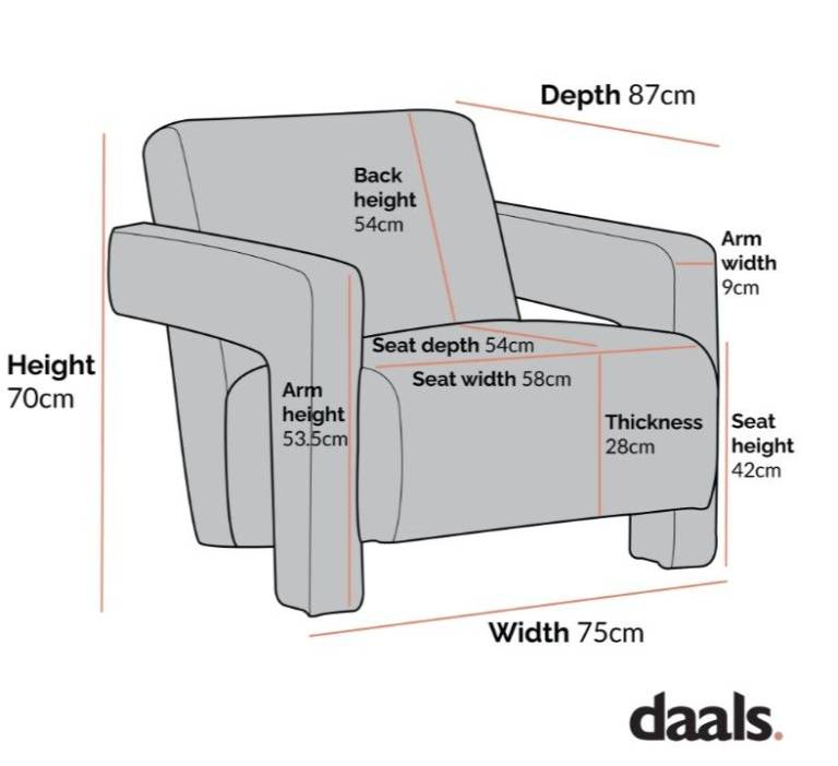 The Brompton Sculptural Armchair in Rust Velvet by Daals is a firm and comfortable foam-filled armchair with a striking orange colour. Made with hardwood and upholstered in luxurious velvet fabric, this armchair boasts a unique sculptural design that adds a touch of style to any living space. With a seat depth of 54cm and an armrest height of 53.5cm, this unit is perfect for one person to relax and unwind in style. Assembly is not required, making it easy to place in any room of the house.