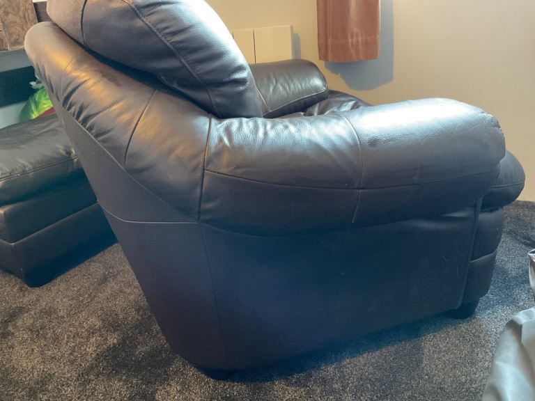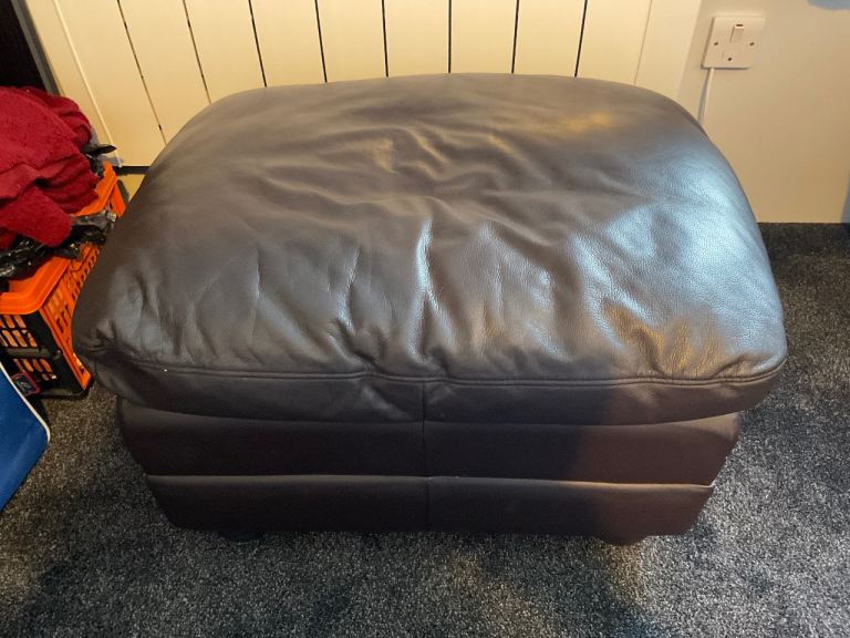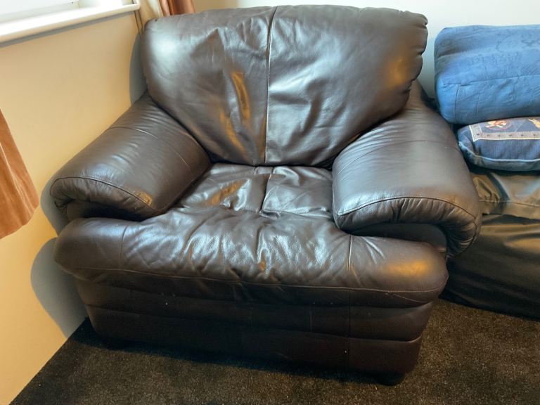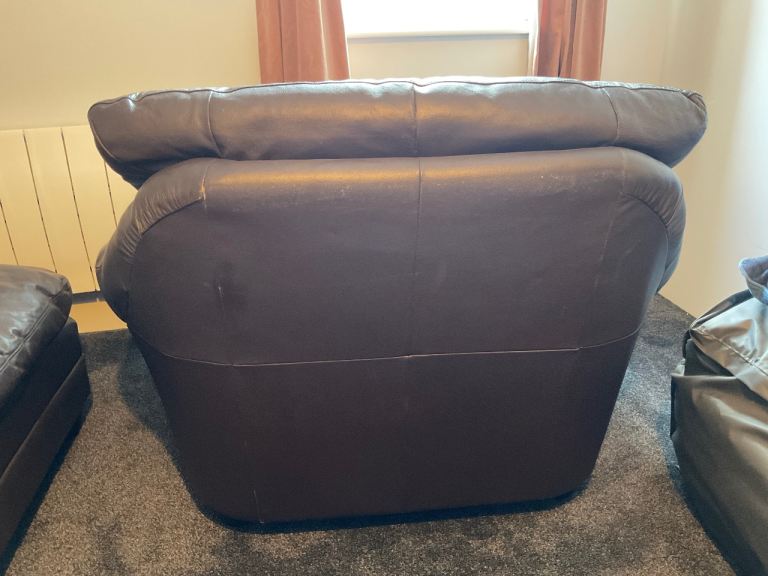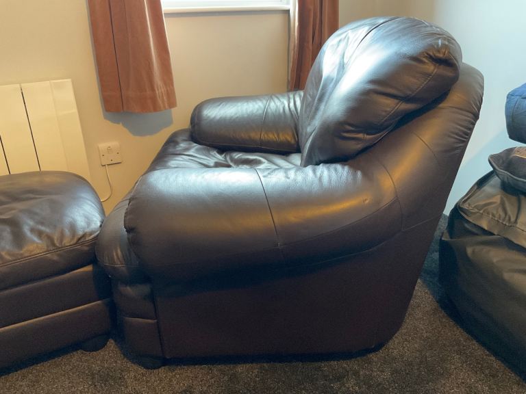 Posting for 12+ yearsBrown leather armchair with footstool