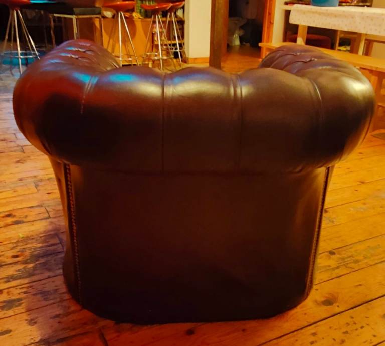 Gorgeous roomy chesterfield armchair, deep seat, excellent support, absolute centrepiece with vintage vibes
