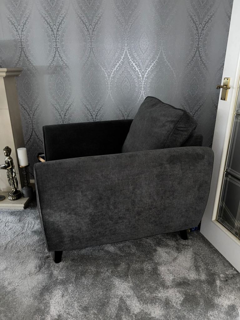 Lovely grey armchair, perfect for adding extra seating to a living room.