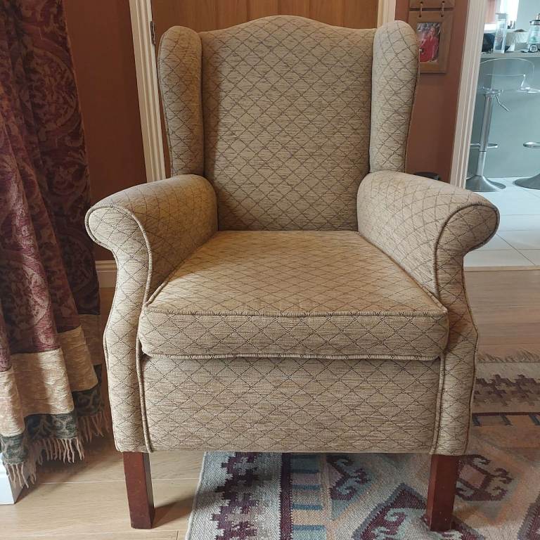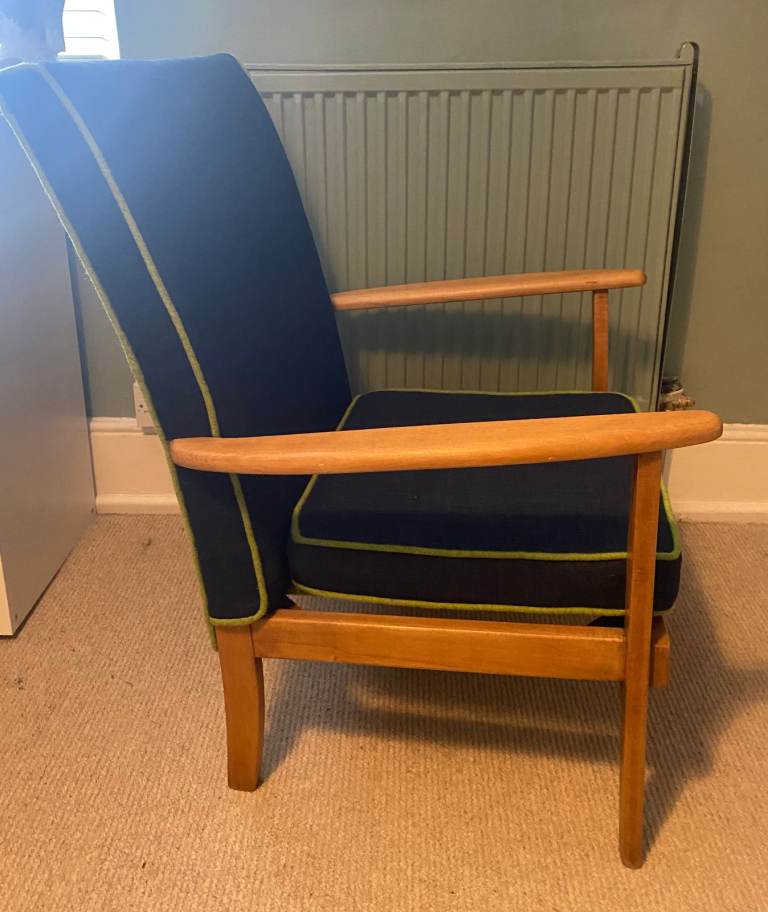 Posting for 13+ yearsContemporary Armchair, navy blue lime green piping.