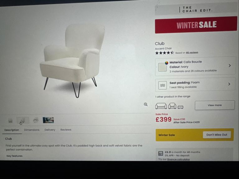 Posting for 8+ monthsDfs CLUB accent chair lightly used RRP 429 - collection only