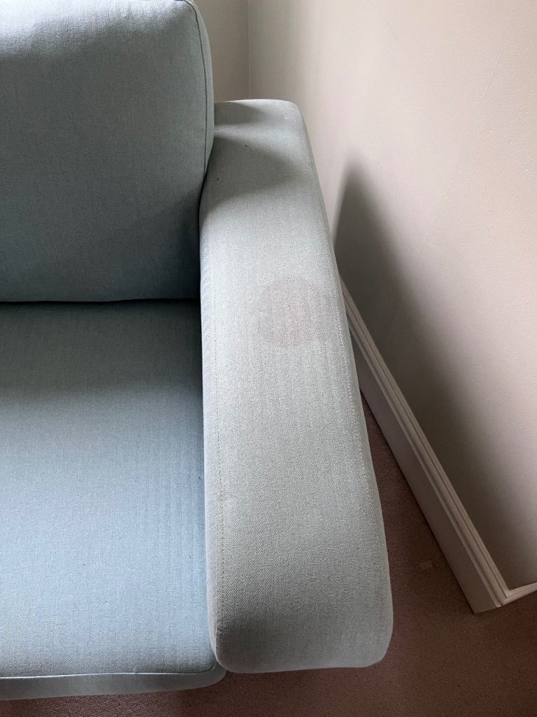 It has a small stain on the left-hand arm as shown in the photo but with a little cleaning, it will look as good as new!