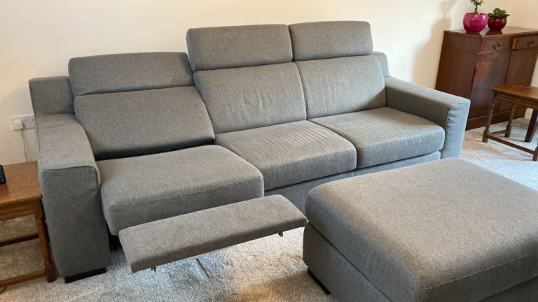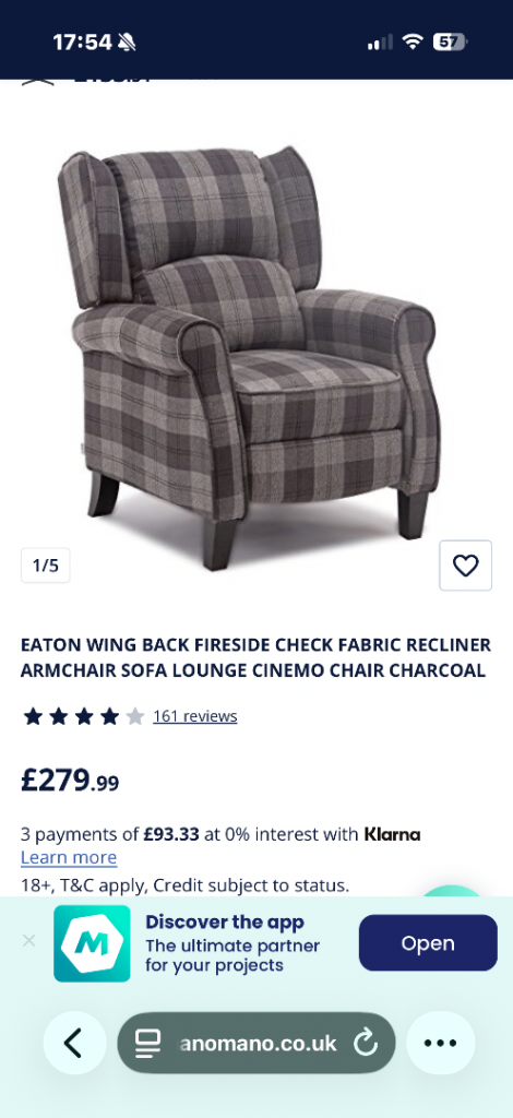 Eaton Wing Back Recliner Armchair – Charcoal Grey Check Fabric