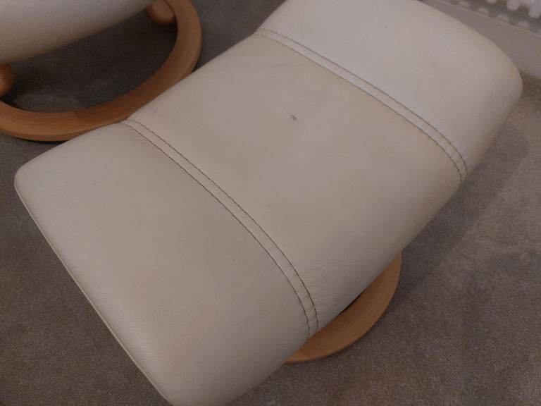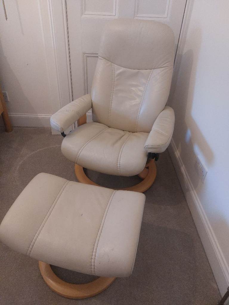 Ekornes Stressless Cream Consul Recliner Chair and Footstool, Small.
