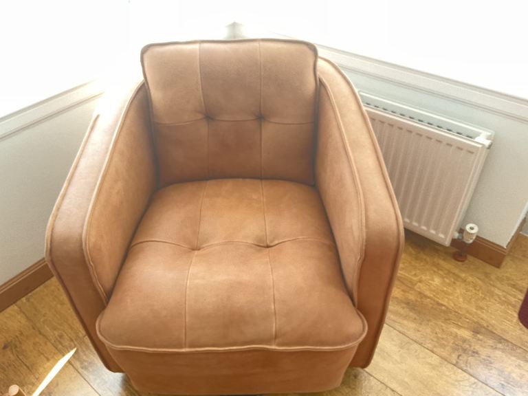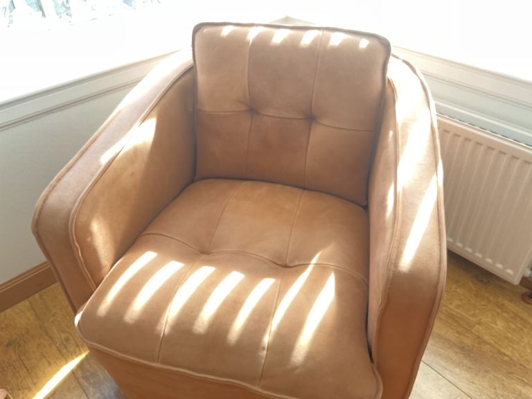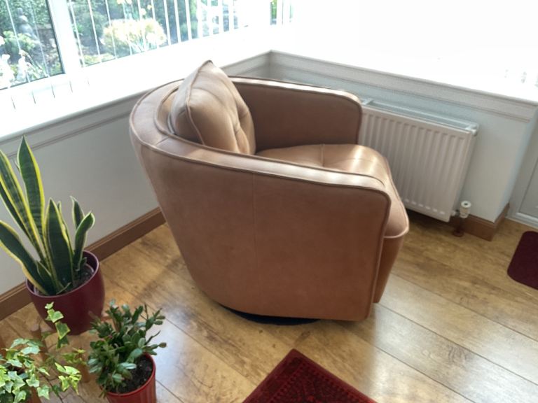 This is an Italian made Emperor Swivel Chair. Official colour is Damasco. The chair offers a laid back style with outstanding comfort giving a soft and luxurious feel. It is in first class condition and is for sale because it is now excess to requirement.