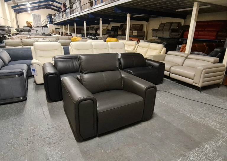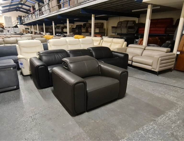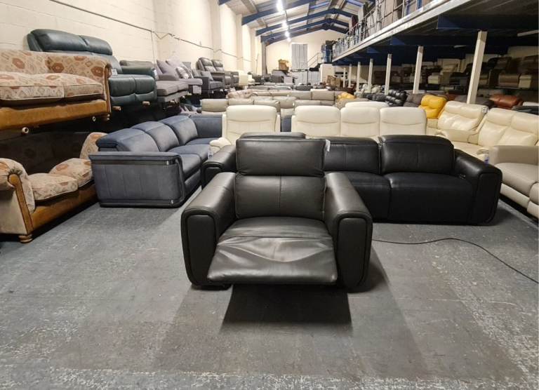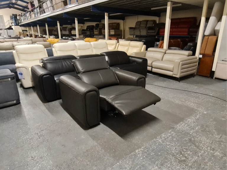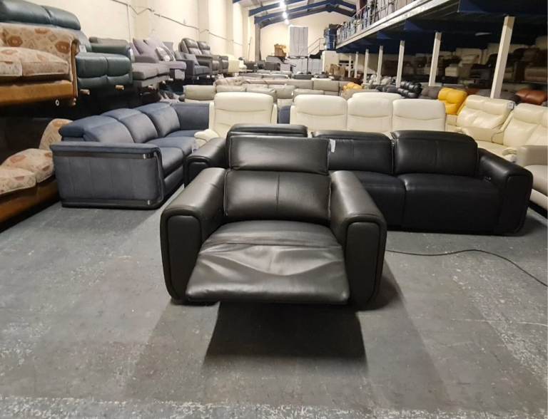 Posting for 8+ yearsEx-display Premiere grey leather electric recliner armchair with heated seat